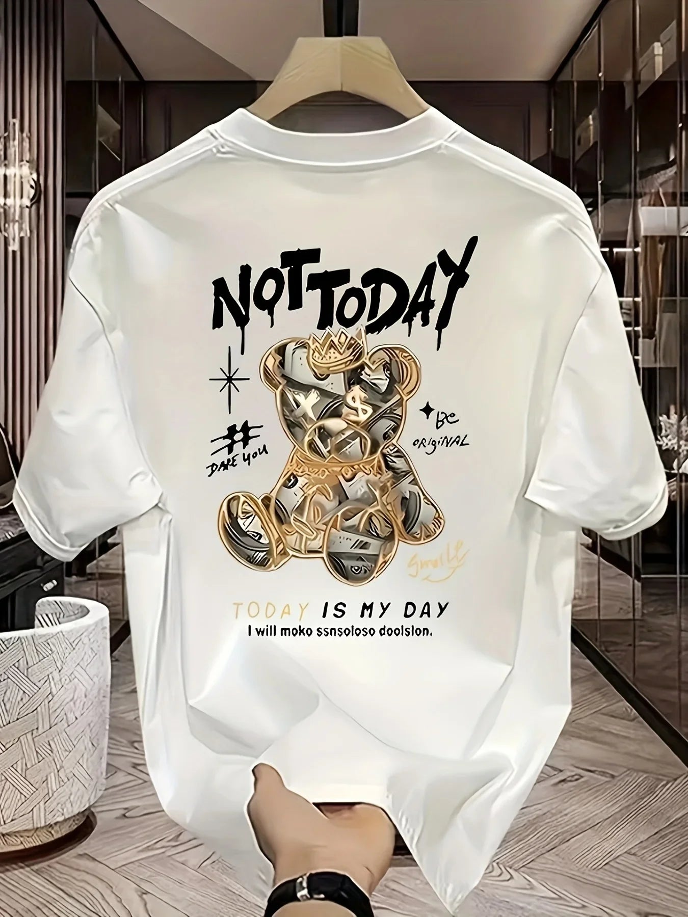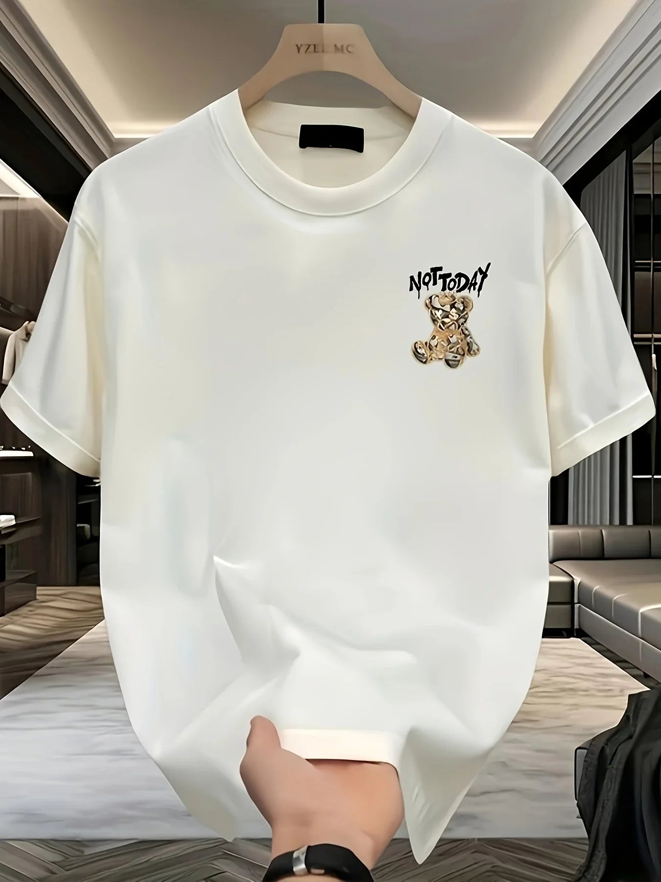 Men's summer 100% pure cotton fashionable casual loose cartoon bear pattern printed short-sleeved T-shirt top