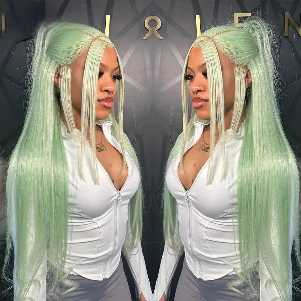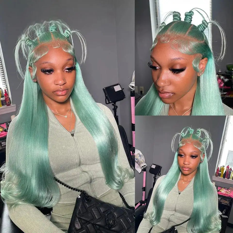 Mint Green 13x4 HD Transparent Lace Front Wig Straight Lace Front Wigs Body Wave 613 Colored Lace Front Human Hair Wigs On Sale