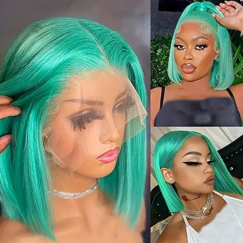 Mint Green Colored Short Bob Straight 13x4 Lace Frontal Wigs Human Hair Wigs Brazilian Remy 100% Human Hair Wig For Women