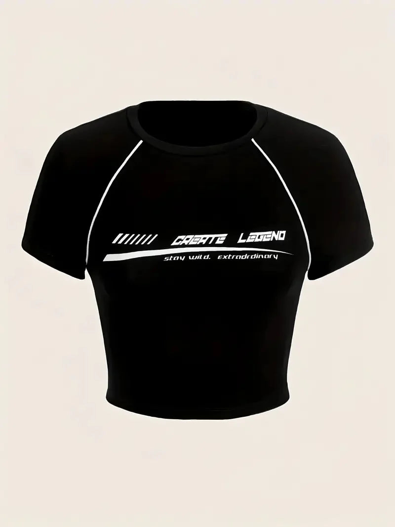 Monogram print crewneck crop top T-shirt, spring/summer casual short-sleeved top, women's