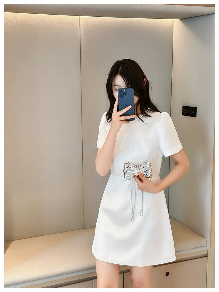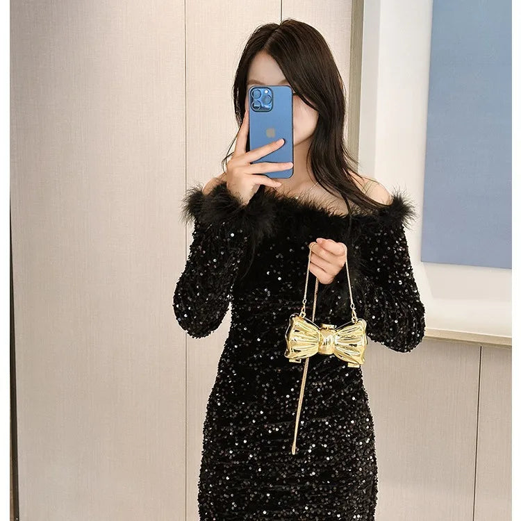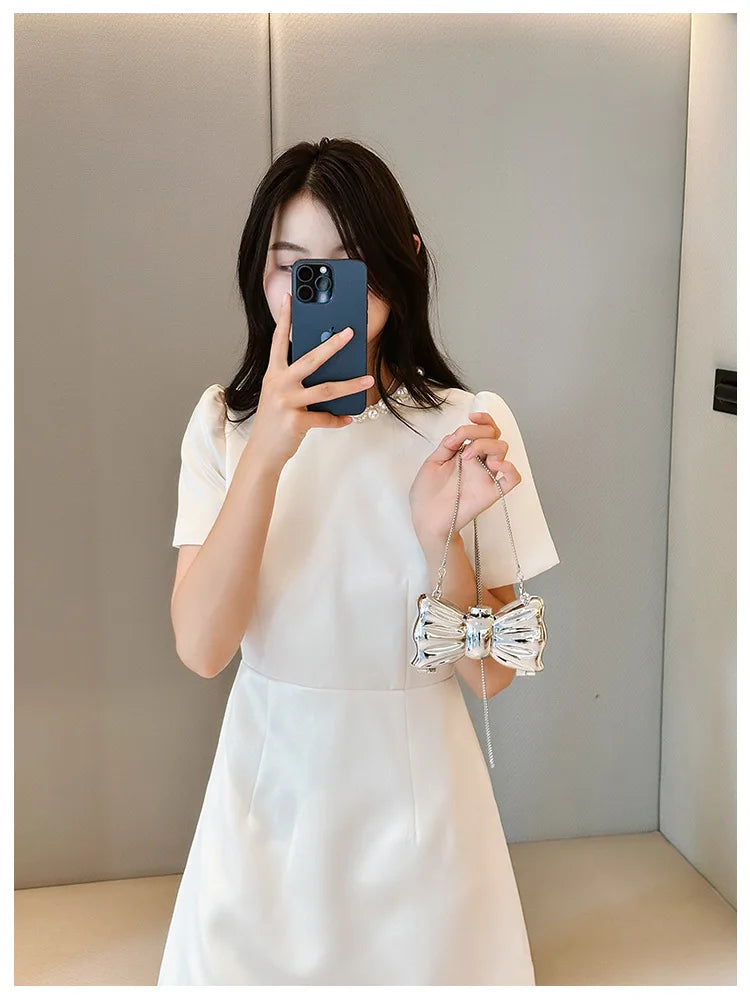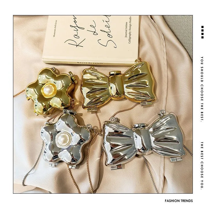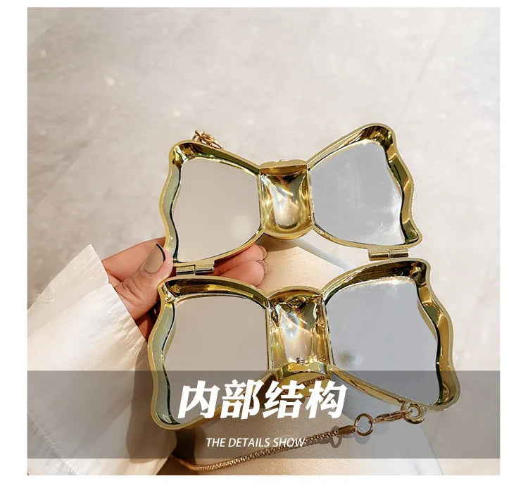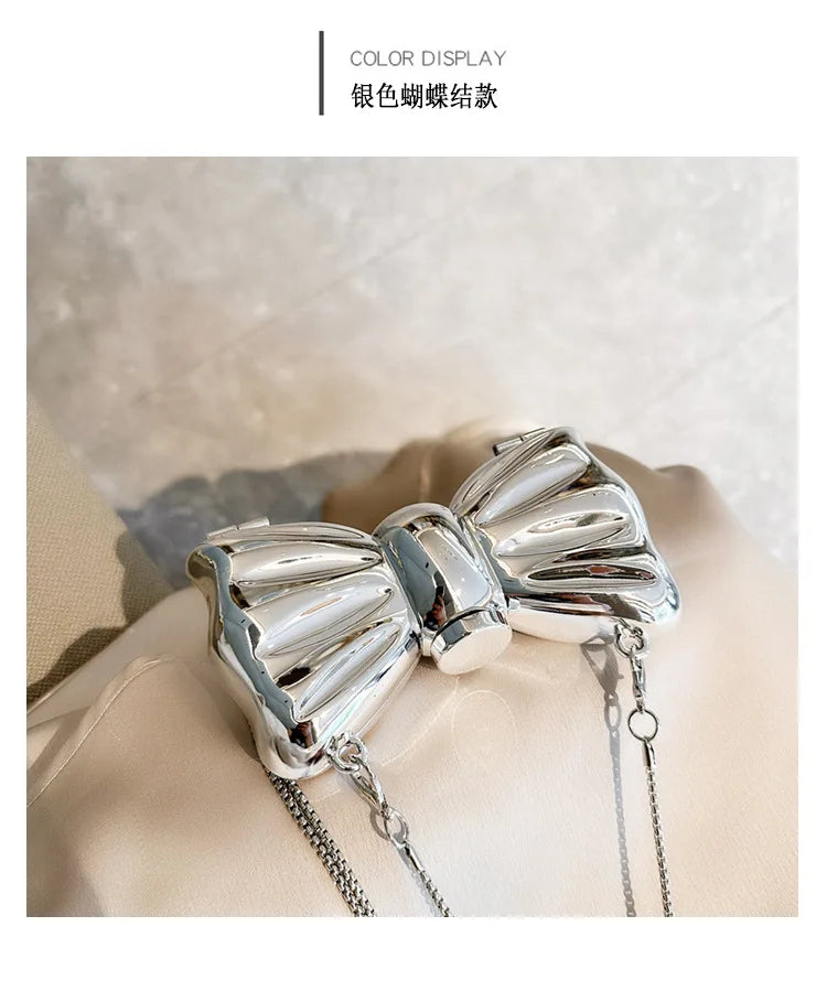 New Mini Evening Bag Metal Purse Crossbody Handbag for Girls Kid Women Bowknot Chain Shoulder Bag for Party Wedding