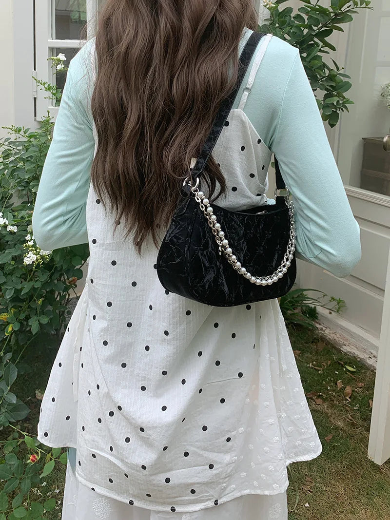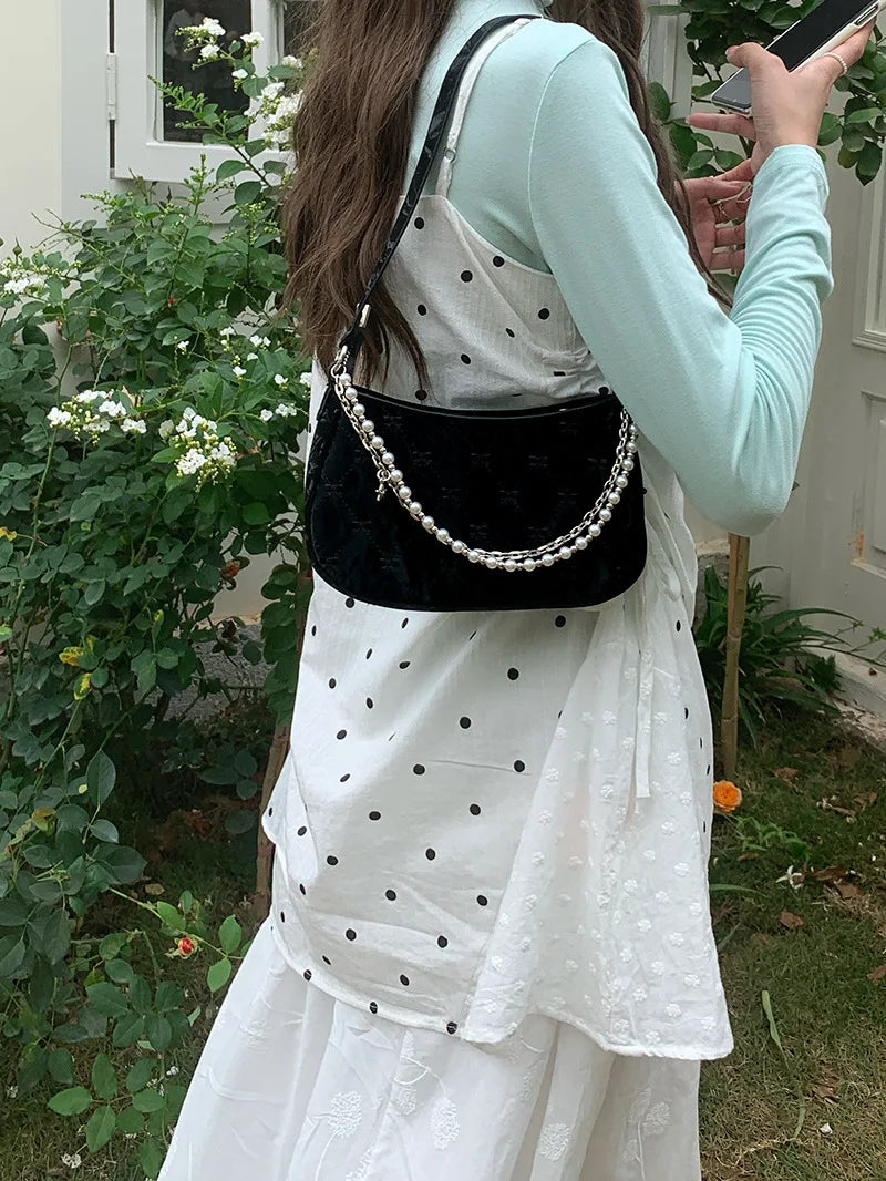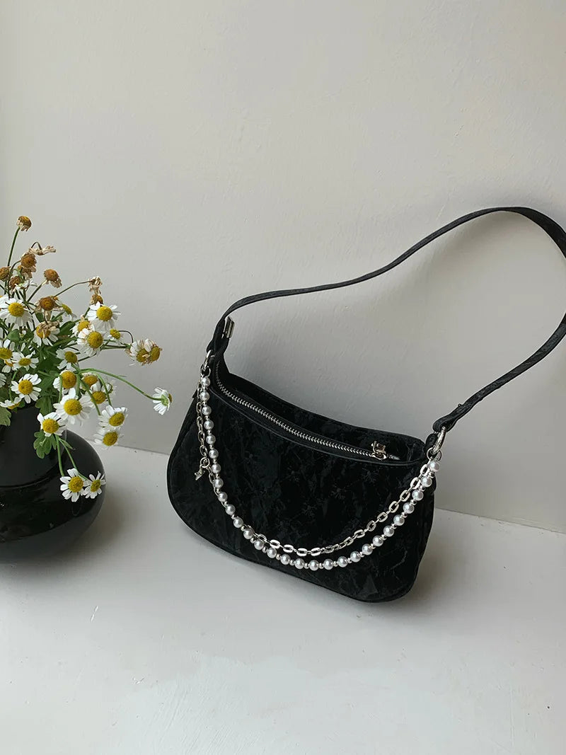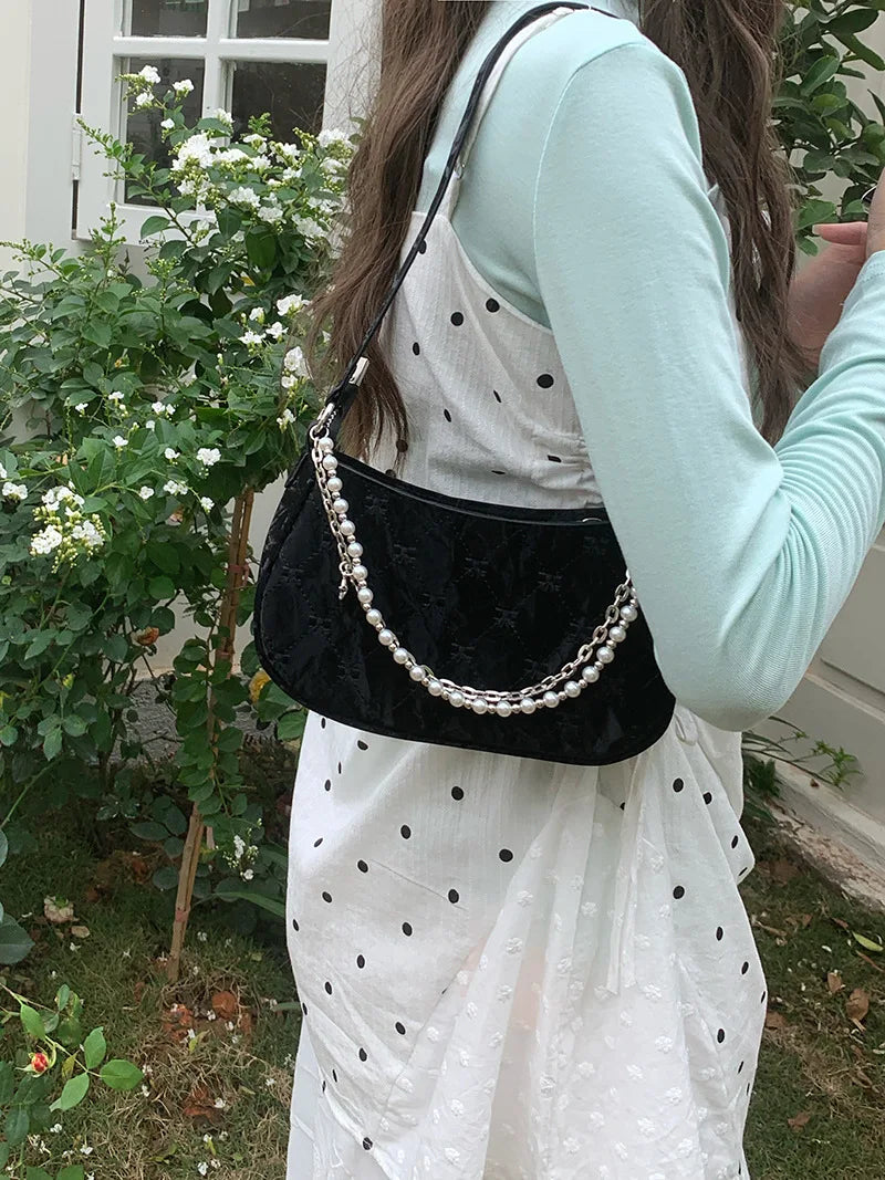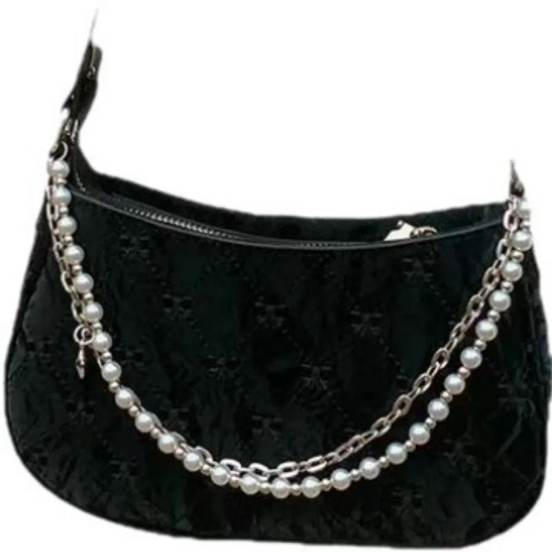 color: Pink + pearl chain, black + pearl chain, off-white + pearl chain