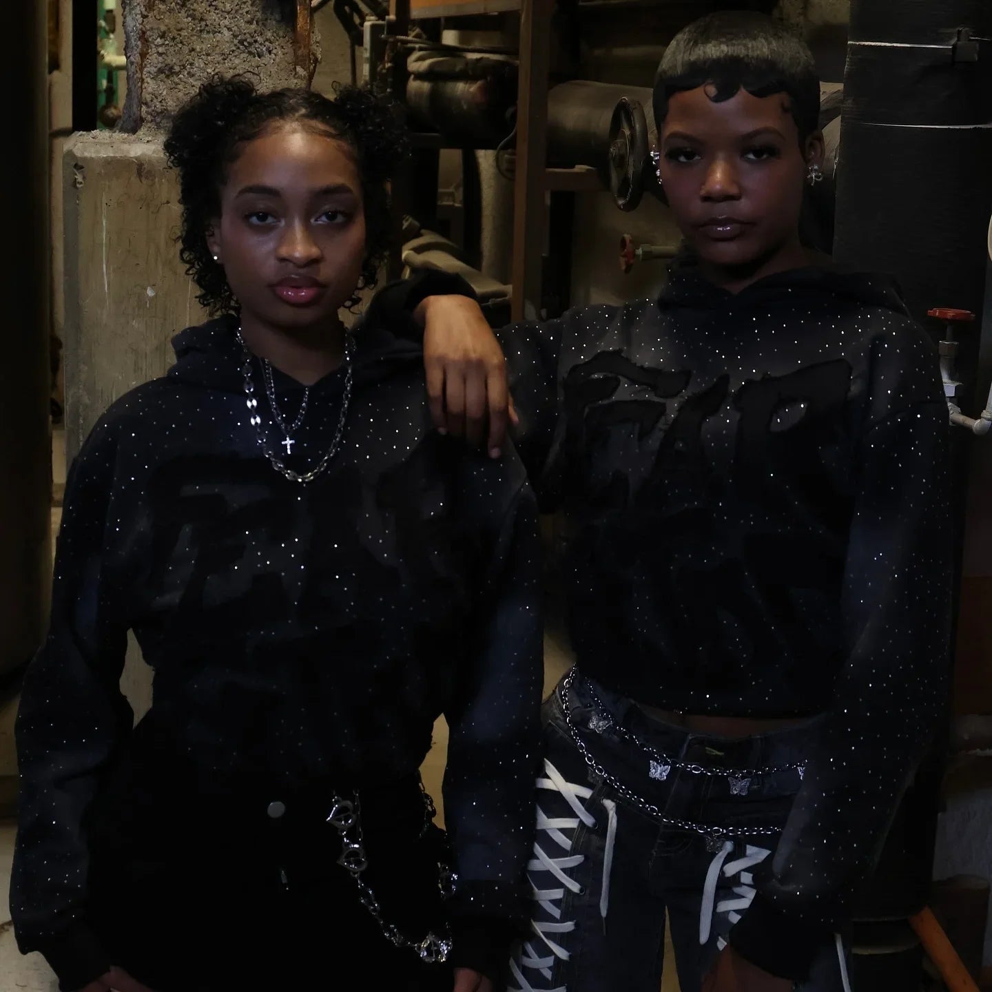 Retro Gothic Full Rhinestone Patch Letter Oversized Hoodie Women's Y2K New Harajuku Hip-Hop Casual Joker Sweatshirt Street Wear