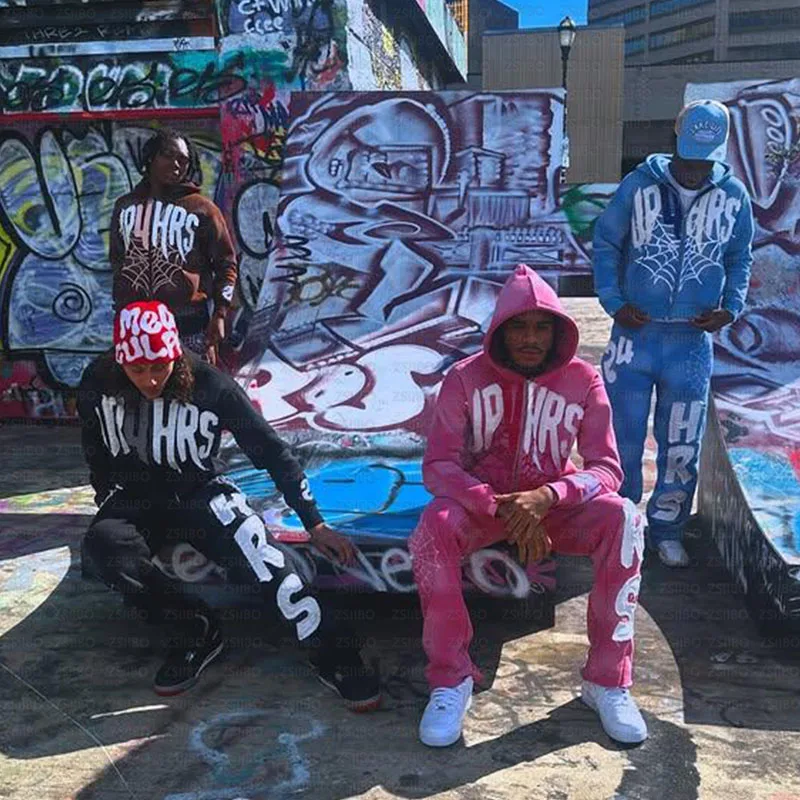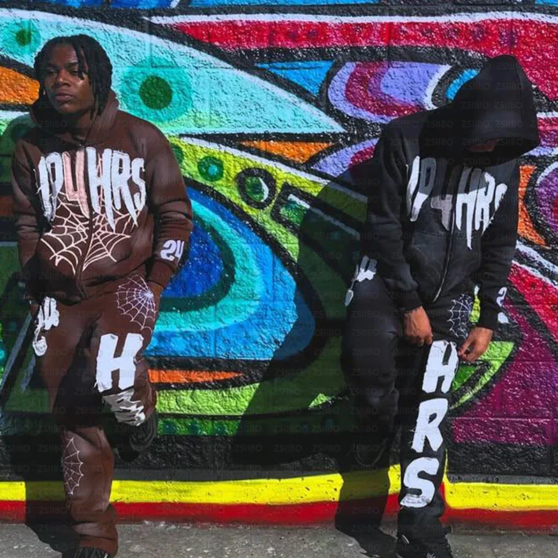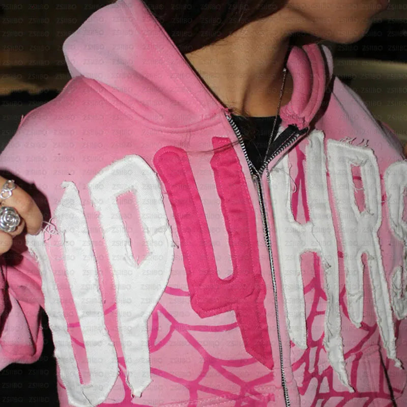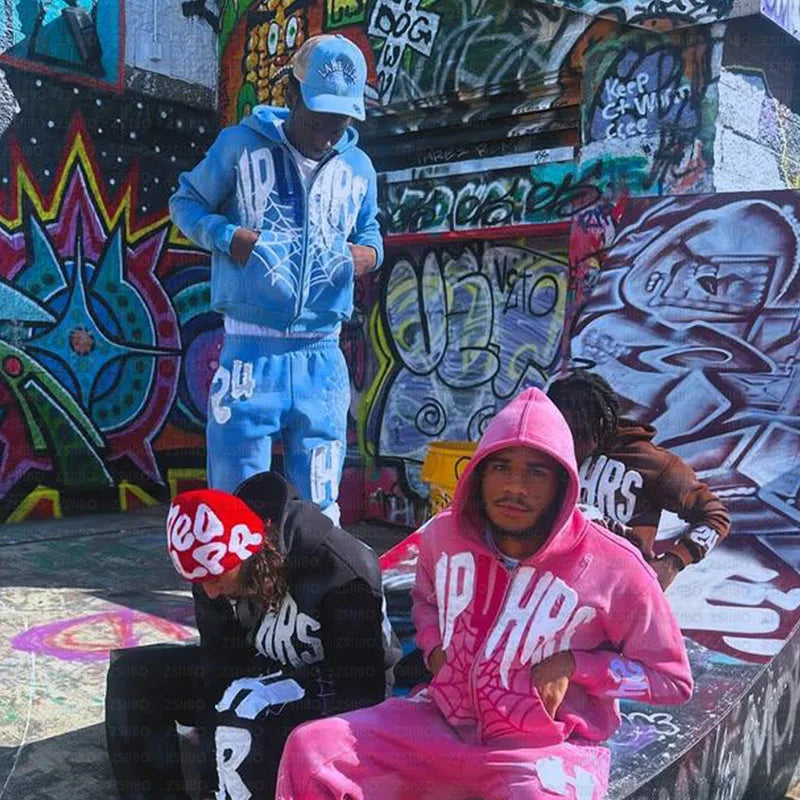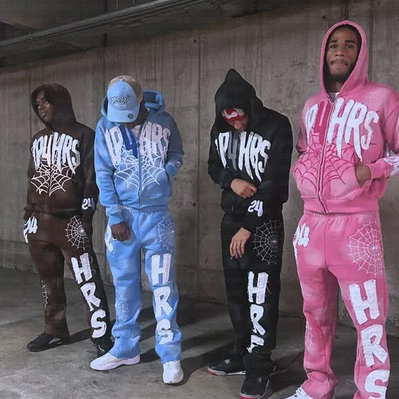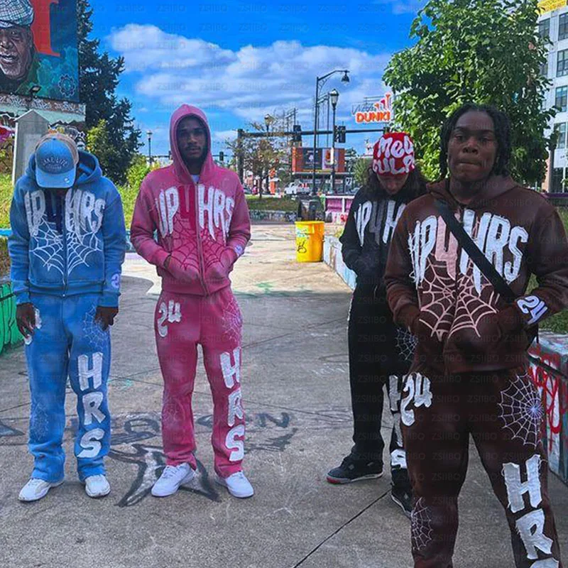 Retro Patch Spider Web Print Zipper Hoodie Y2K Sweatshirt Mens Hip Hop Letter Oversized Hoodie Jacket Clothes Streetwear Jacket