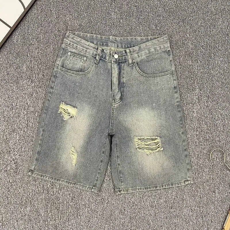 Ripped Denim Shorts Men's American Fashion Brand Loose Straight Mid-pants Casual Versatile Five-point Pants Jort Clothing Jorts