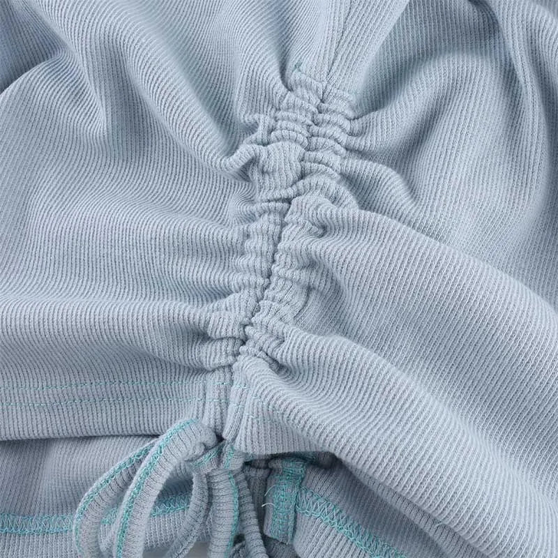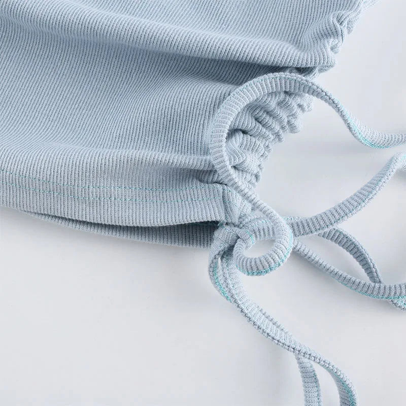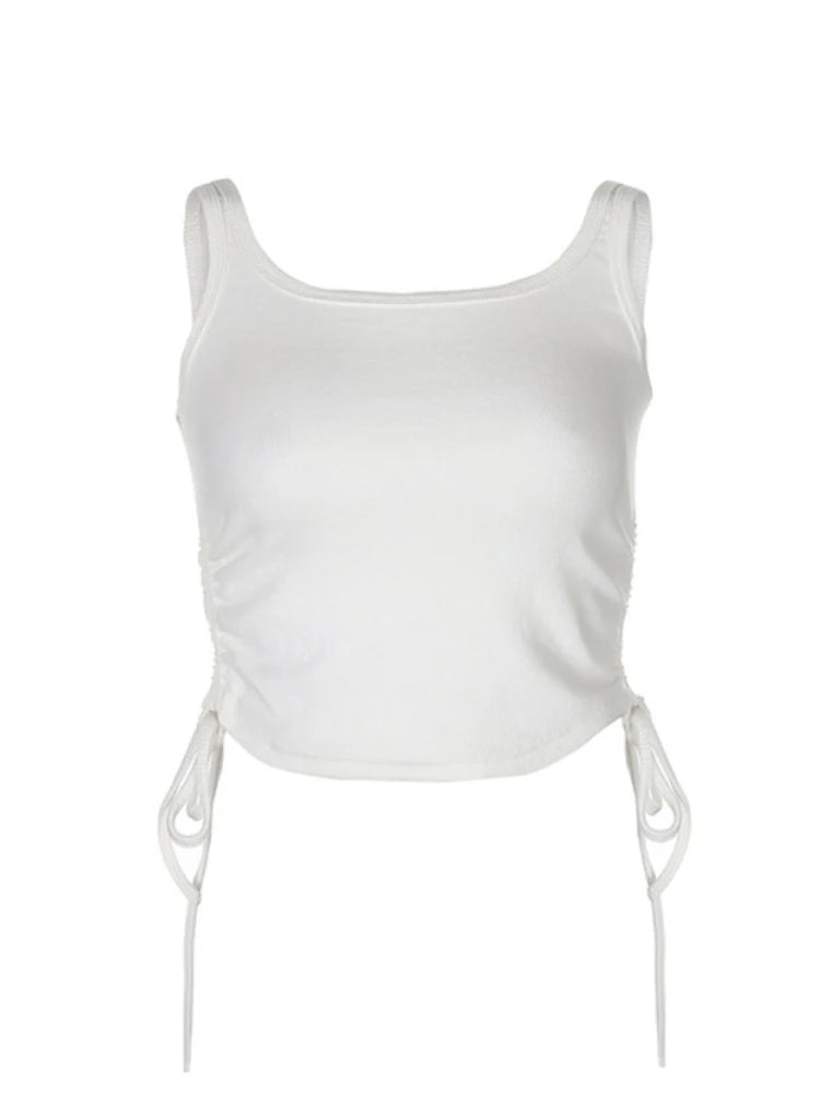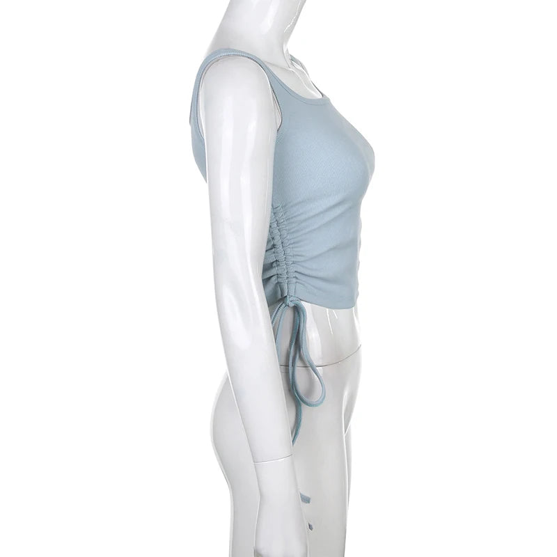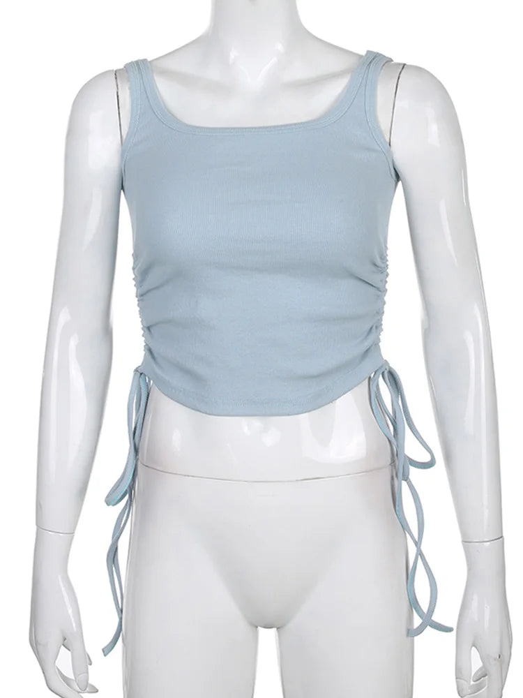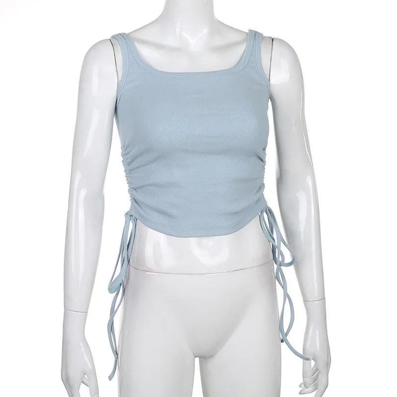 Ruched Sleeveless Tank Tops Tees Women Solid Casual Fashion Crop Top Ladies High Street Tie Up Croptop Summer Fitness