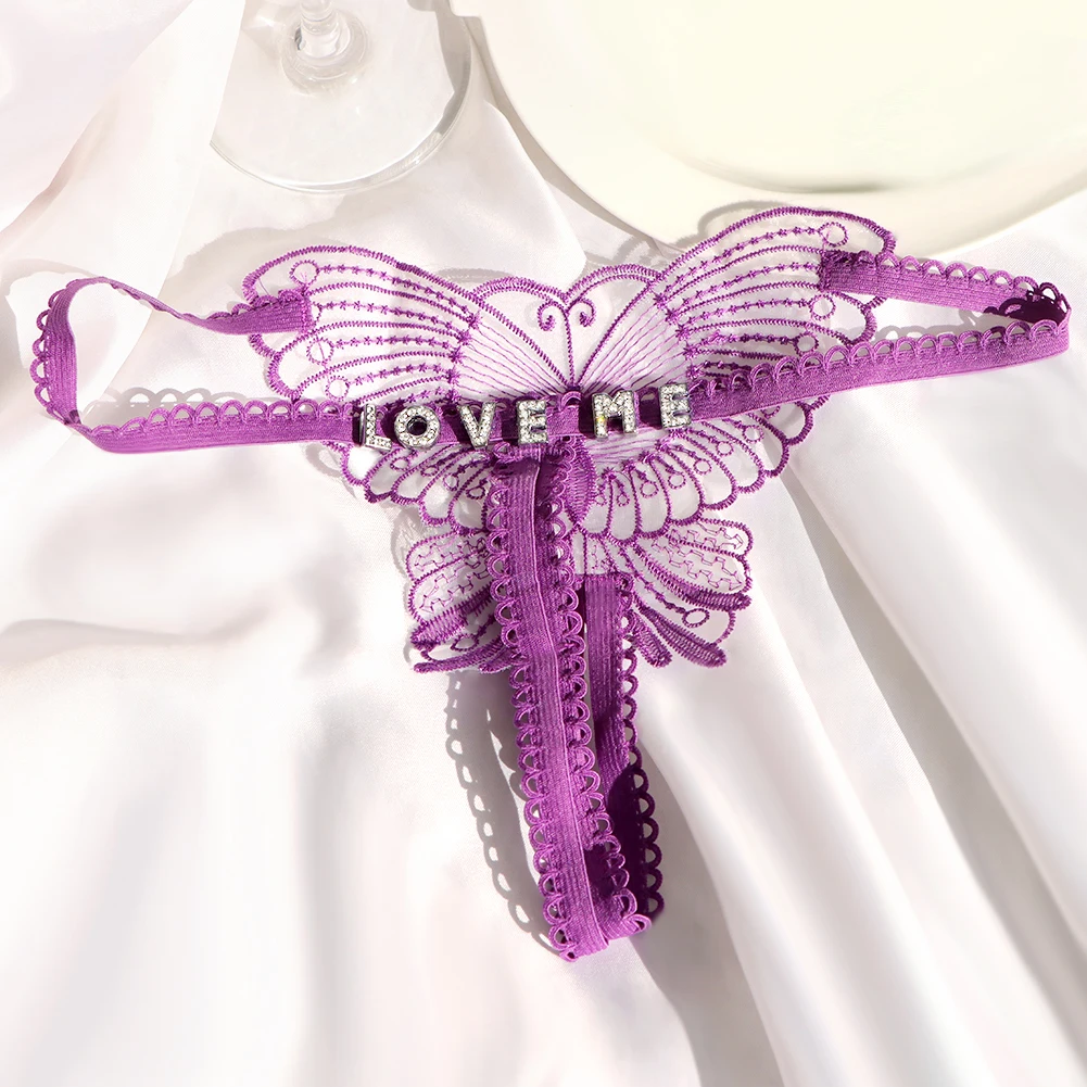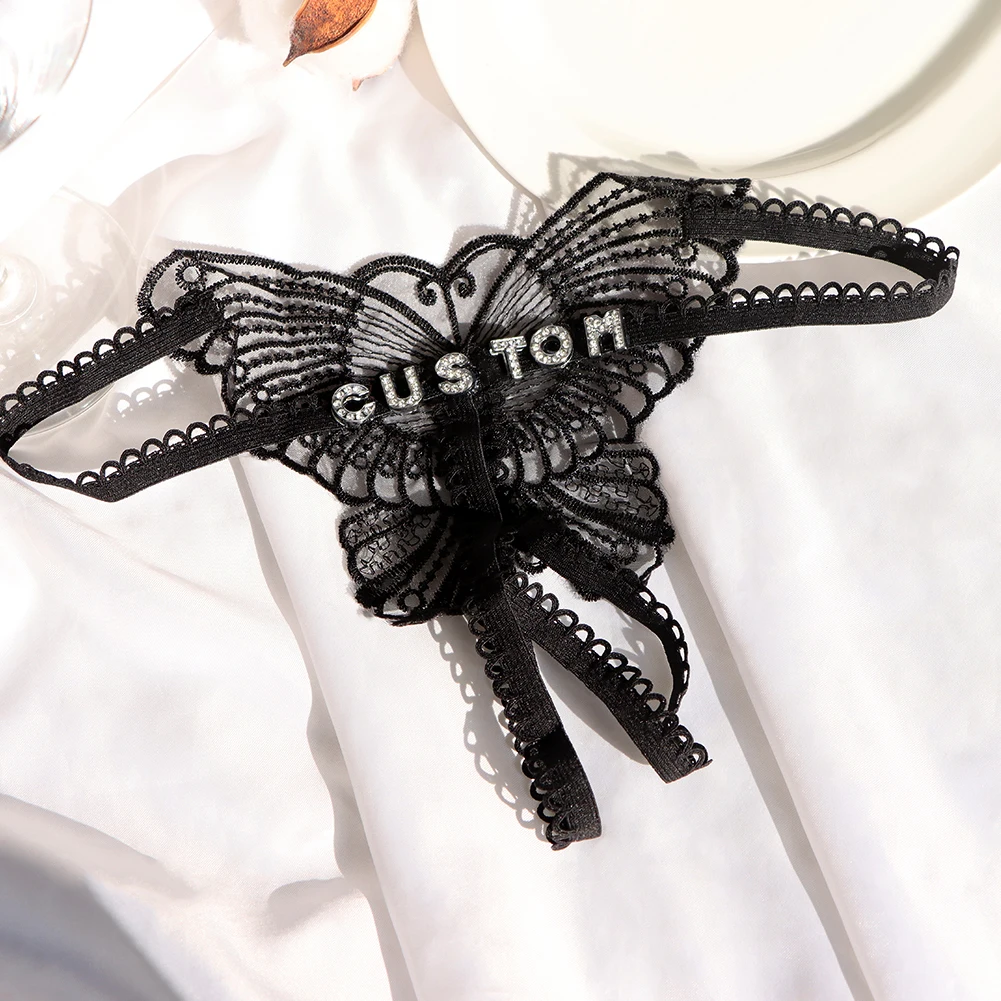 Sexy Butterfly Lace Panties Custom Name Crystal Letter Underwear Thong Transparent Lingerie Personality Girls Intimates Gift