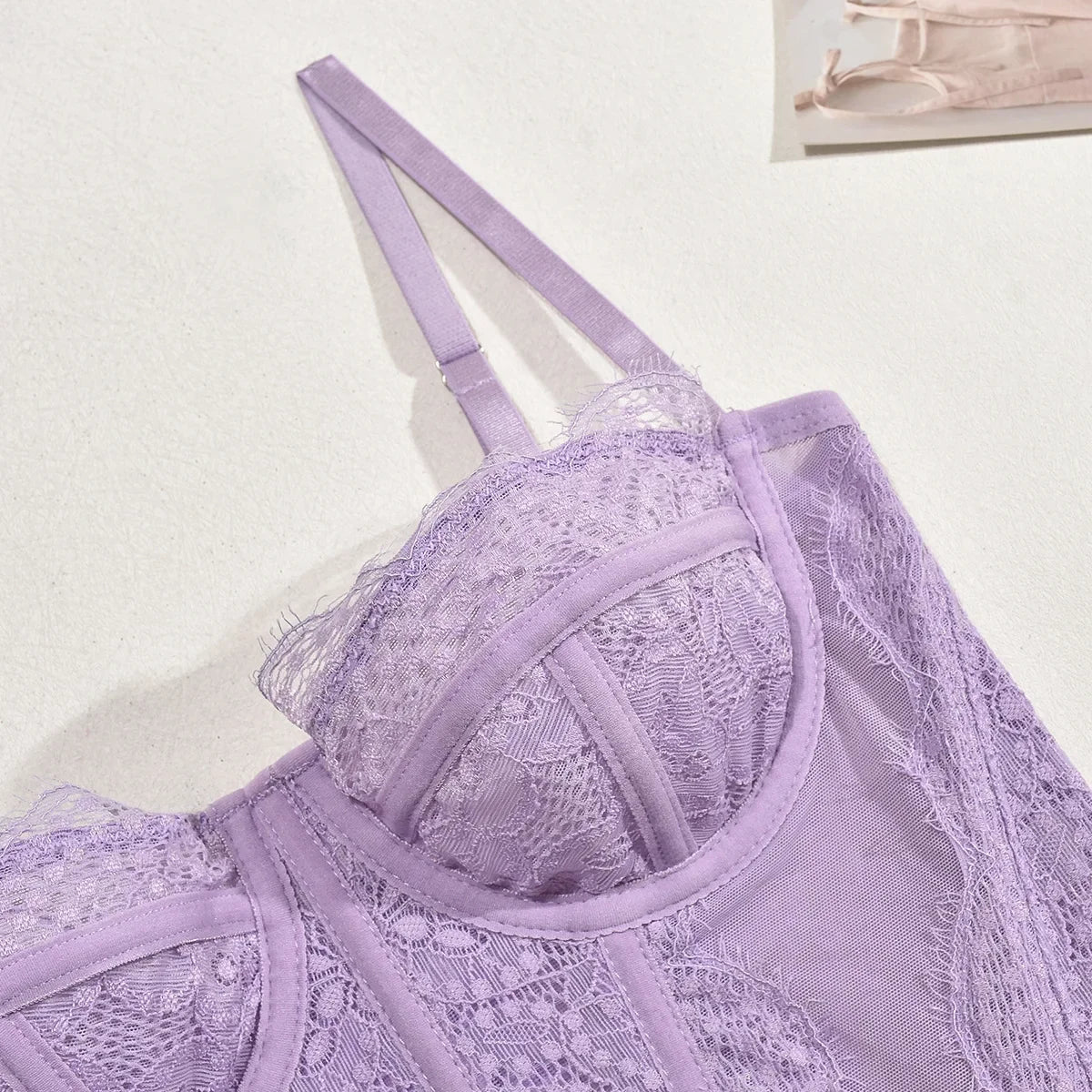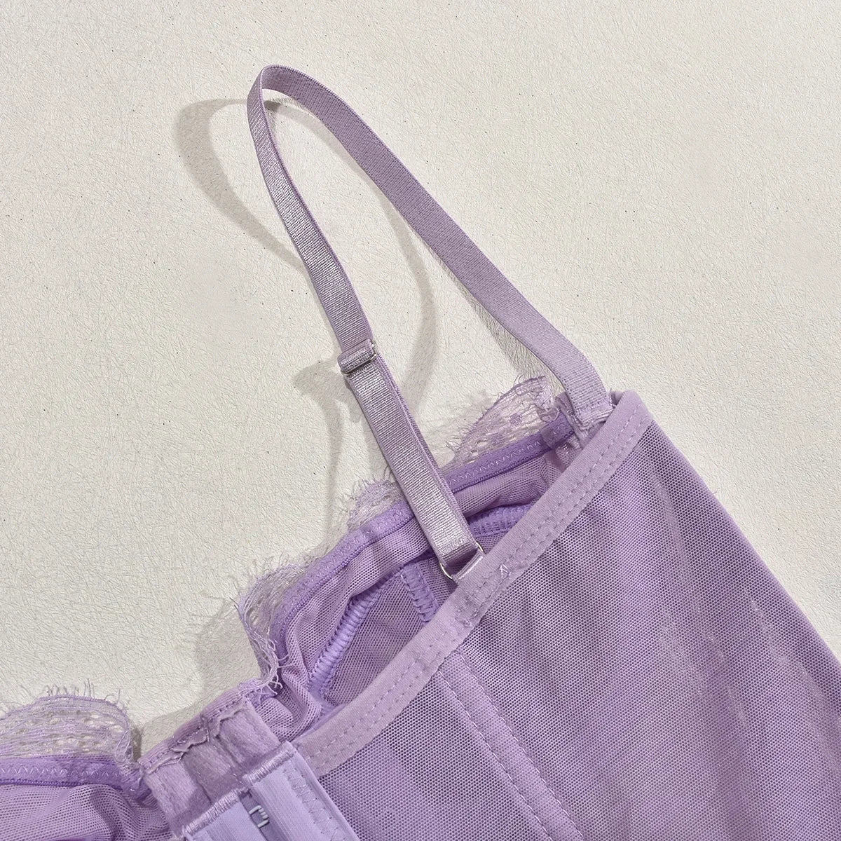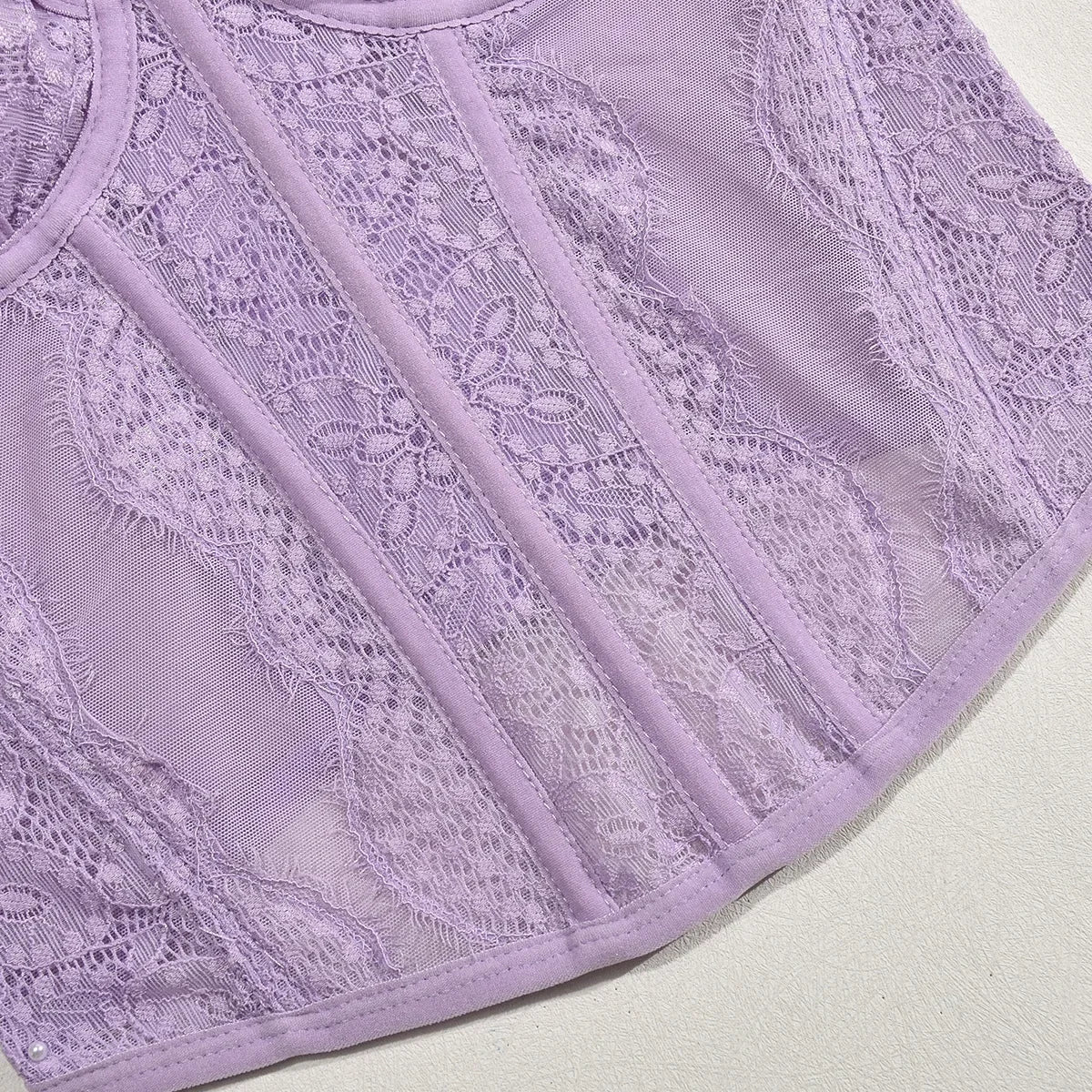 Sexy Lace Mesh Spaghetti Strap Open Back Boned Corset Women Summer Slim Lingerie Bodyshaper Bustier Camisole Halter Vest