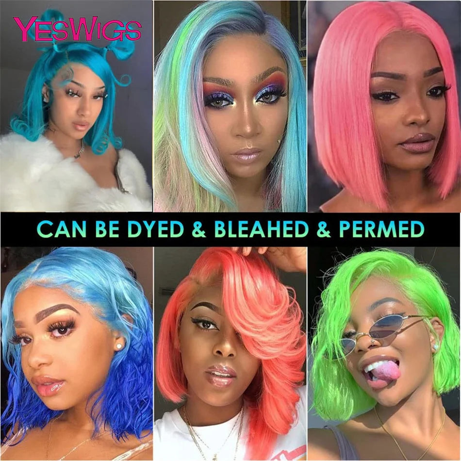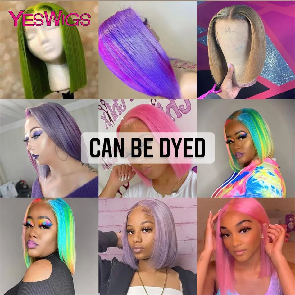 Short Bob Wig Hot Red Burgundy 99j Colored Brown Lace Front Human Hair Wigs Bone Straight Bob Wig Lace Frontal Wigs For Women
