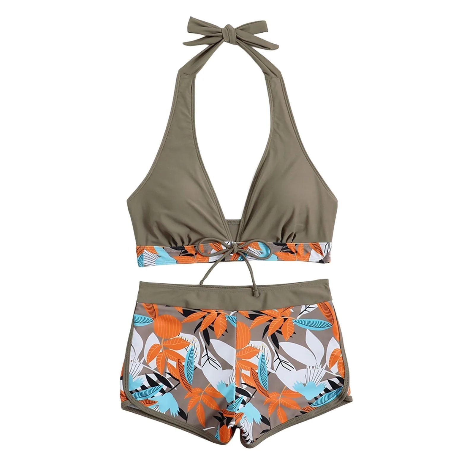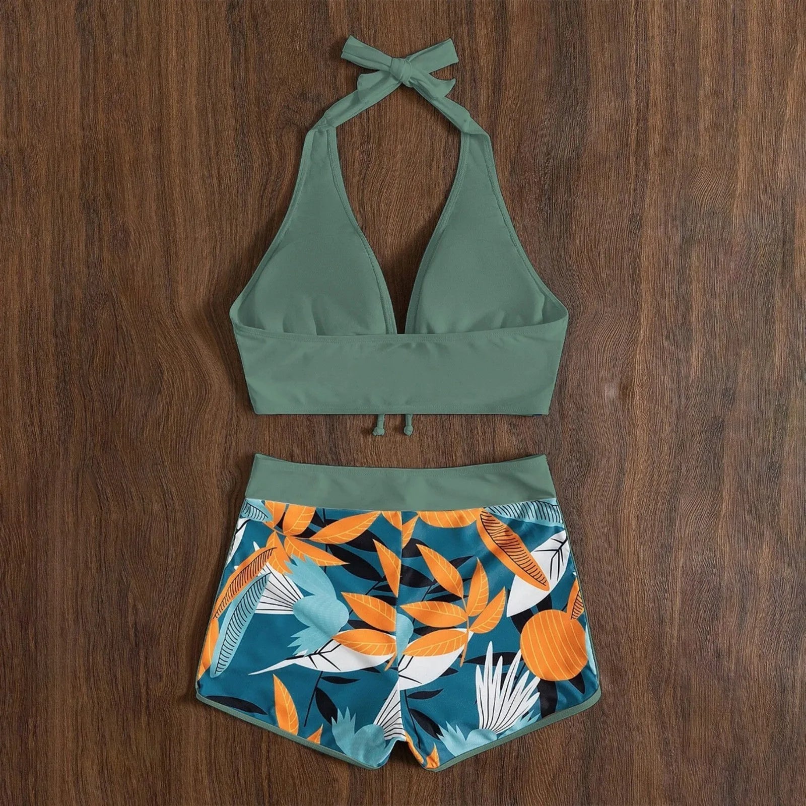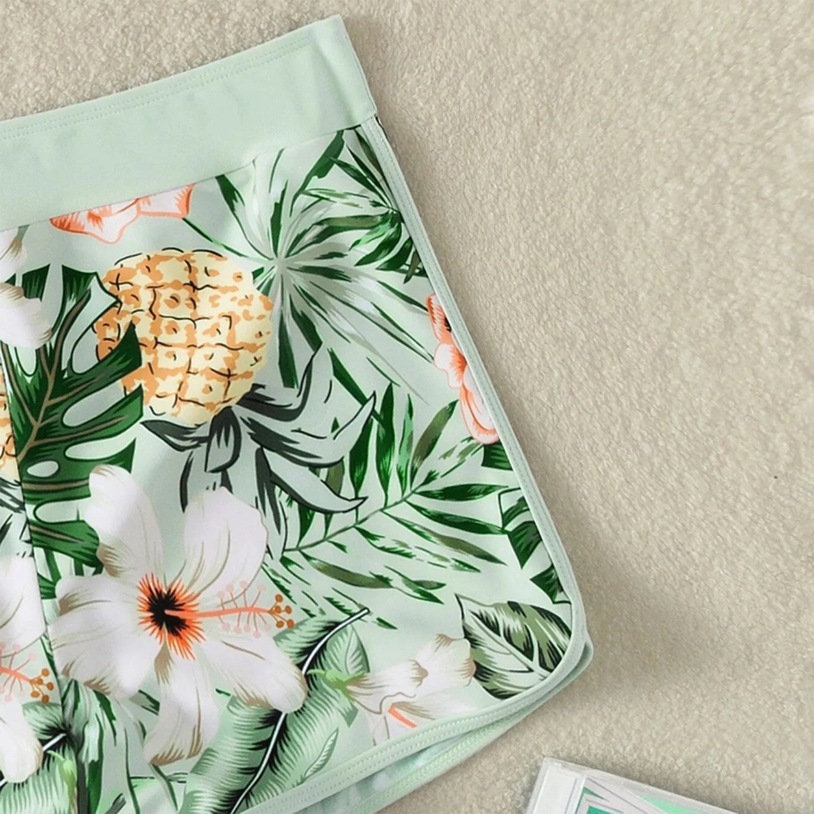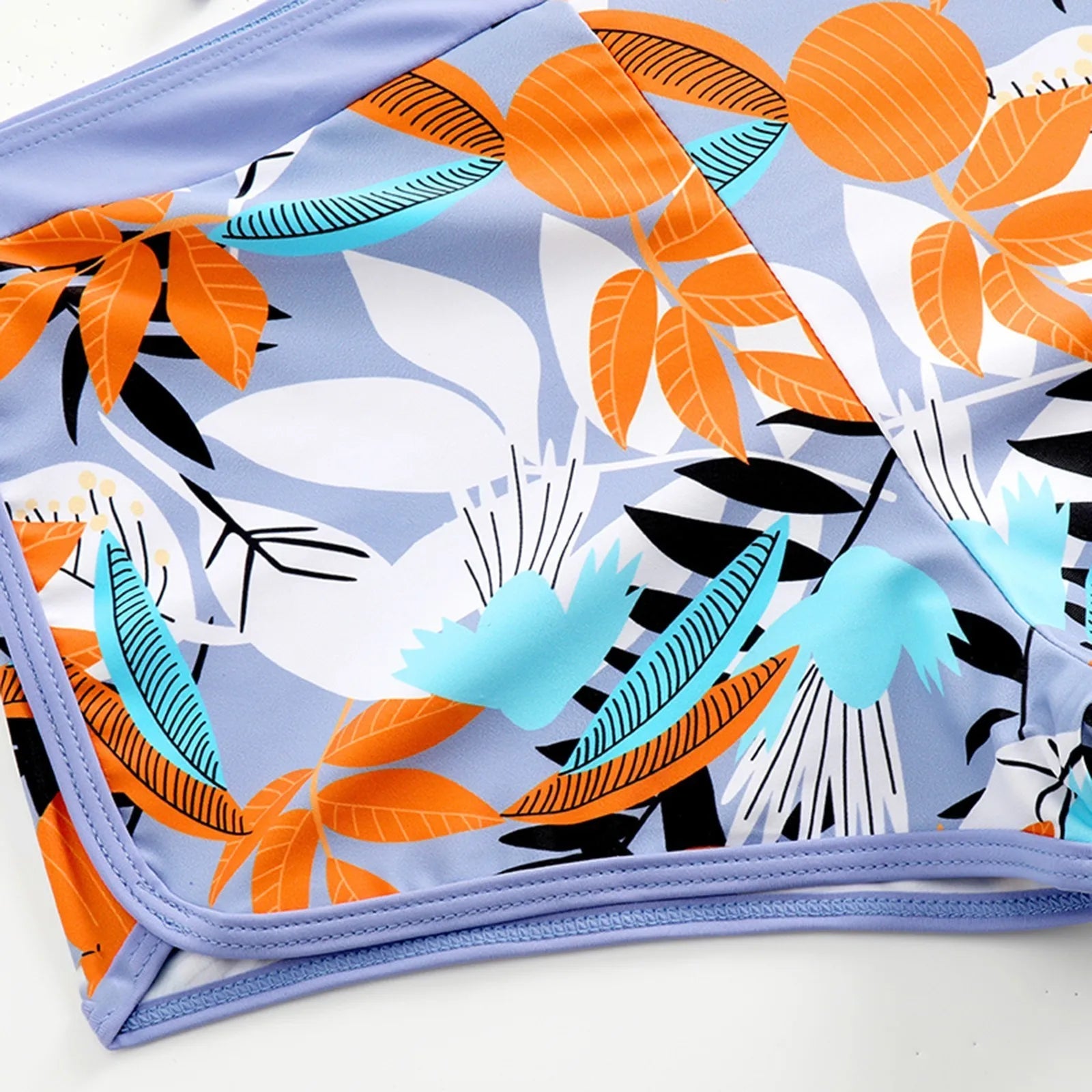 Shorts Bikinis Set High Waist Swimsuit Women Swimwear Plant Print Bathers Bathing Swim Suit Beachwear