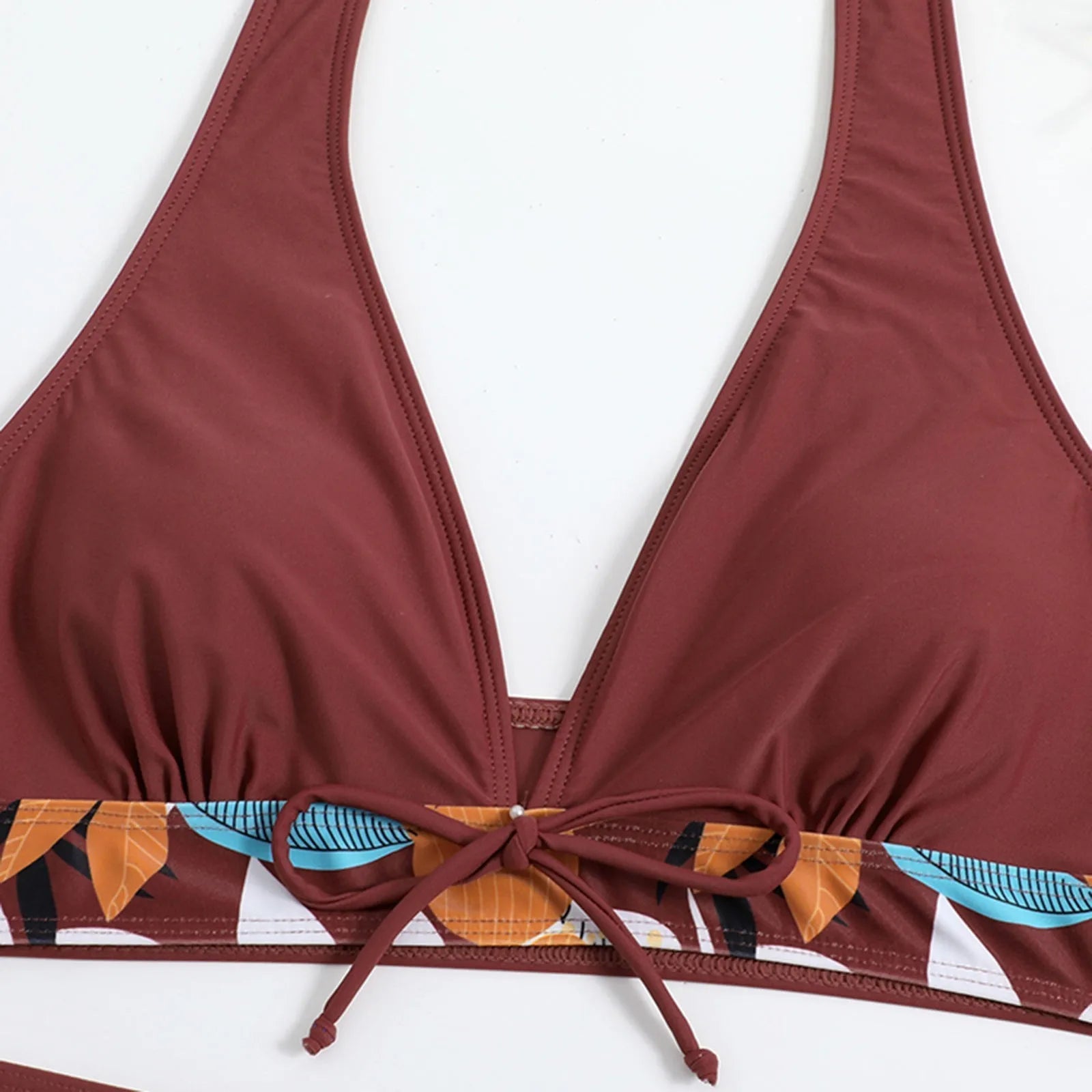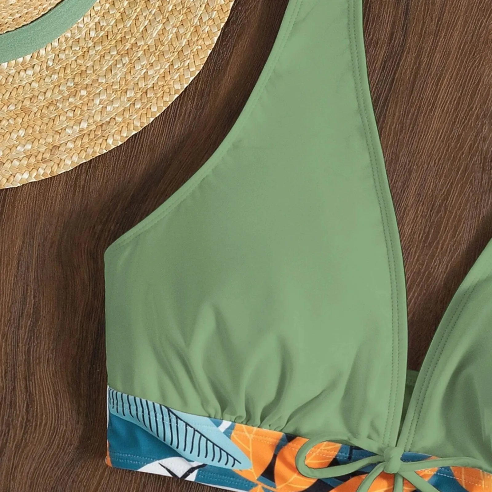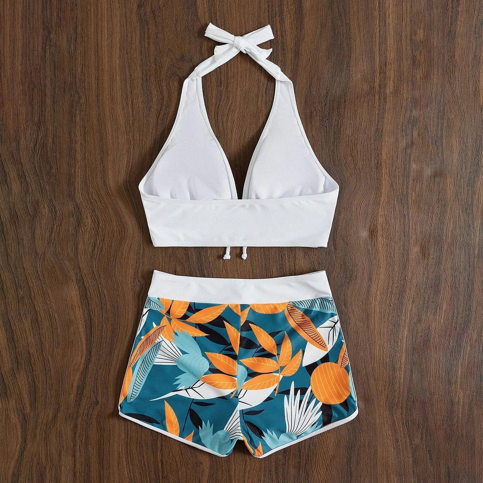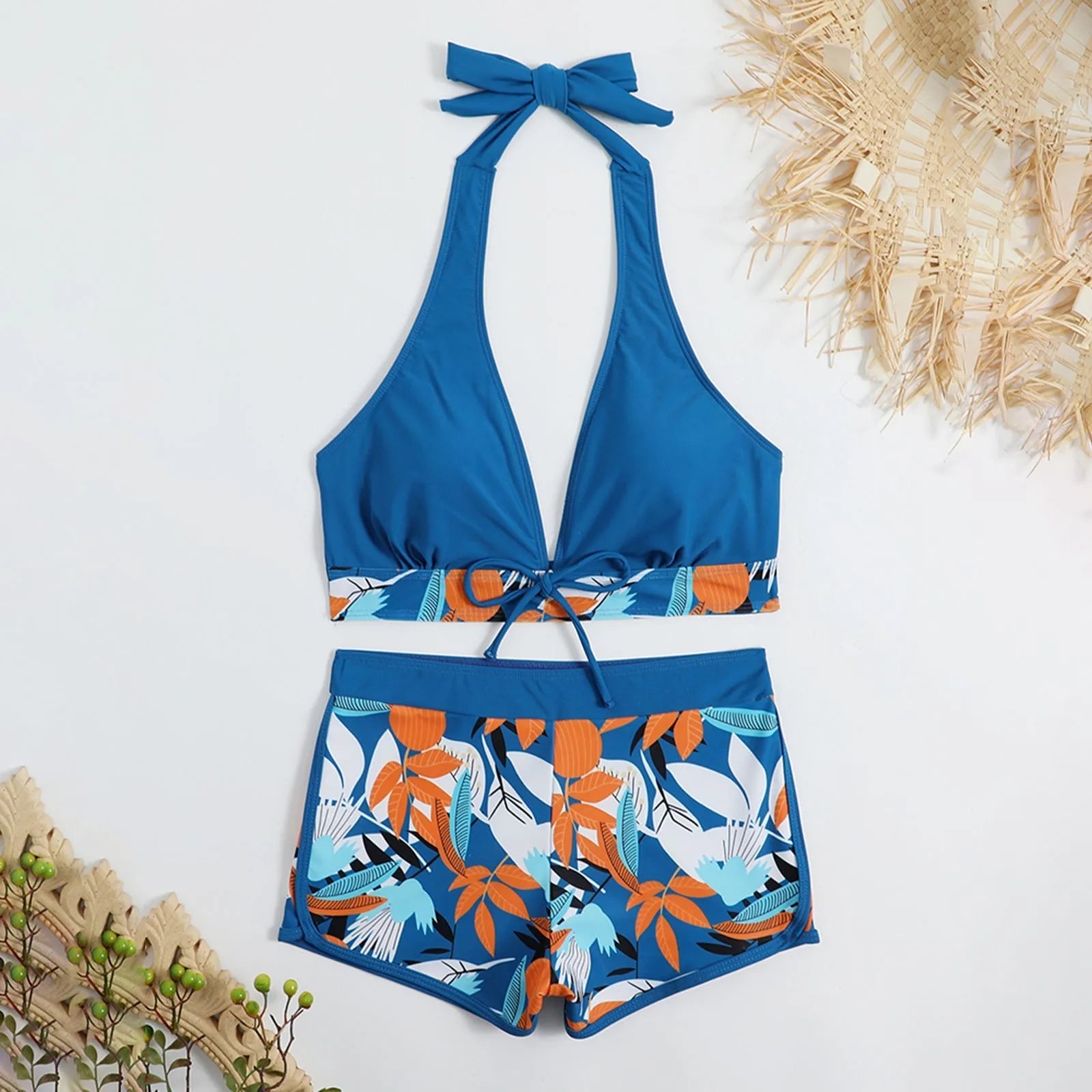 Shorts Bikinis Set High Waist Swimsuit Women Swimwear Plant Print Bathers Bathing Swim Suit Beachwear