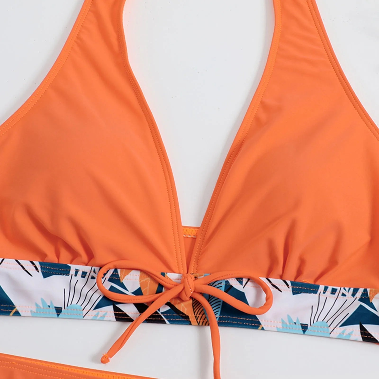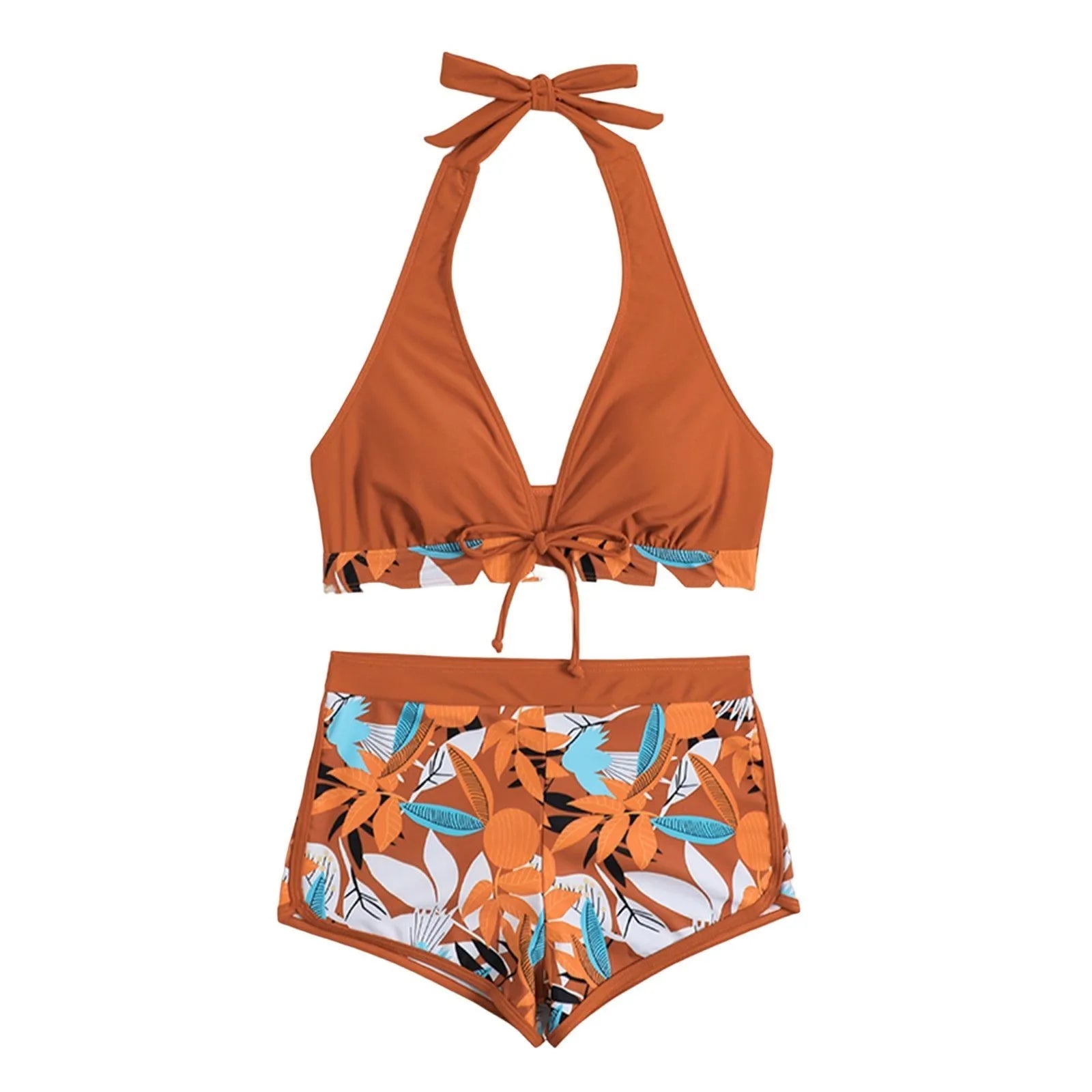 Women's Paneled Printed Swimsuit Ladies Split Boxer High Waist Swimsuit Two-Piece Set