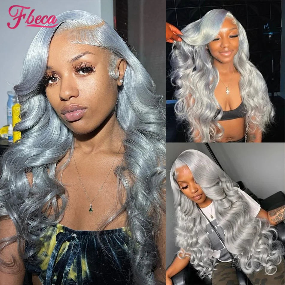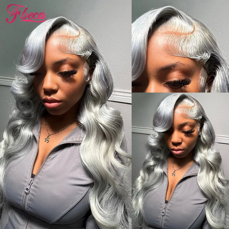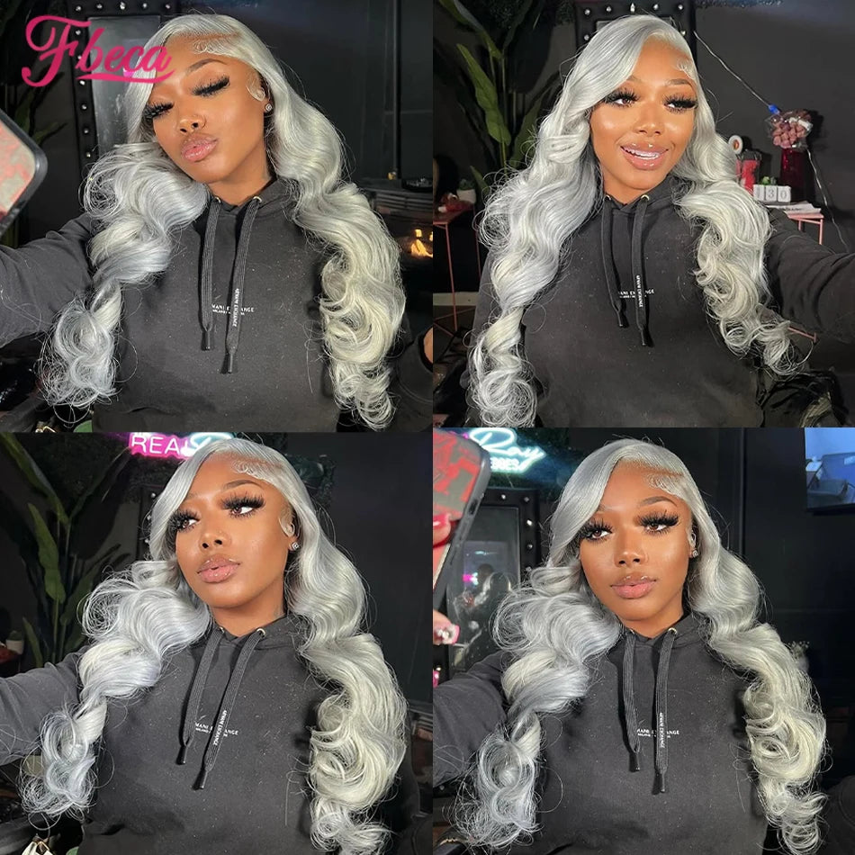 Silver Grey 13x4 HD Transparent Lace Front Human Hair Wigs 13x6 Body Wave Lace Frontal Wig Pre Plucked HD Lace Closure Wigs