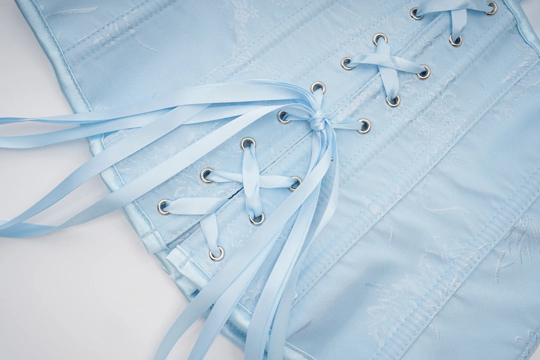 Sky Blue Jacquard Steampunk Underbust Corset Shapewear Women Tummy Control Waist Trainer Sexy Bustiers & Corsets Gothic Clothing