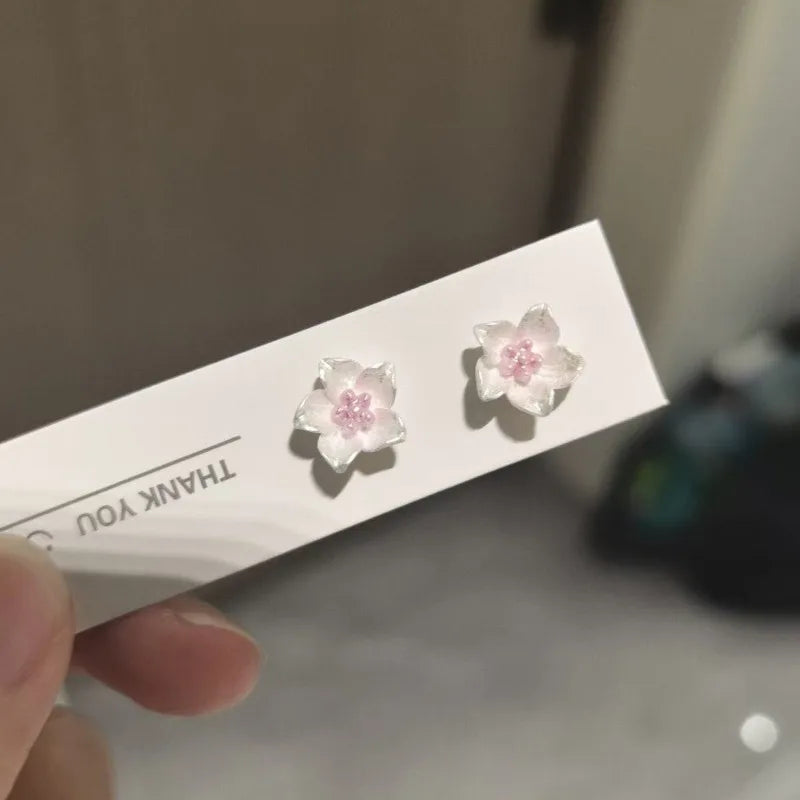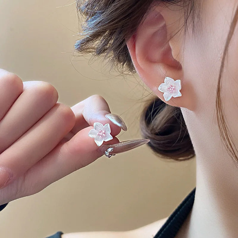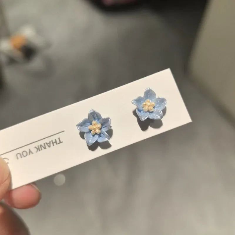 Small Fresh Resin Flower Earrings for Women Simple Fashion Cute Camellia Stud Earrings Mini White Pink Blue Jewelry