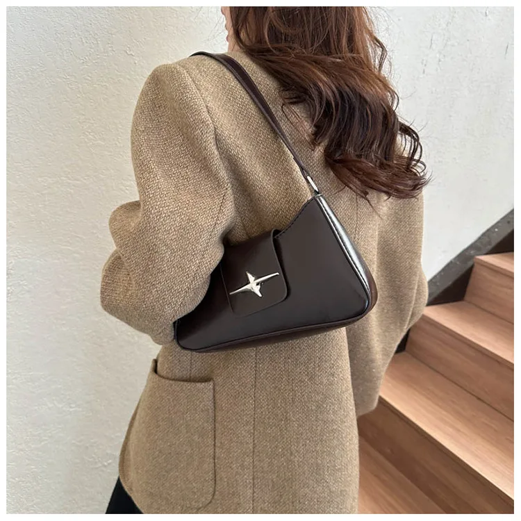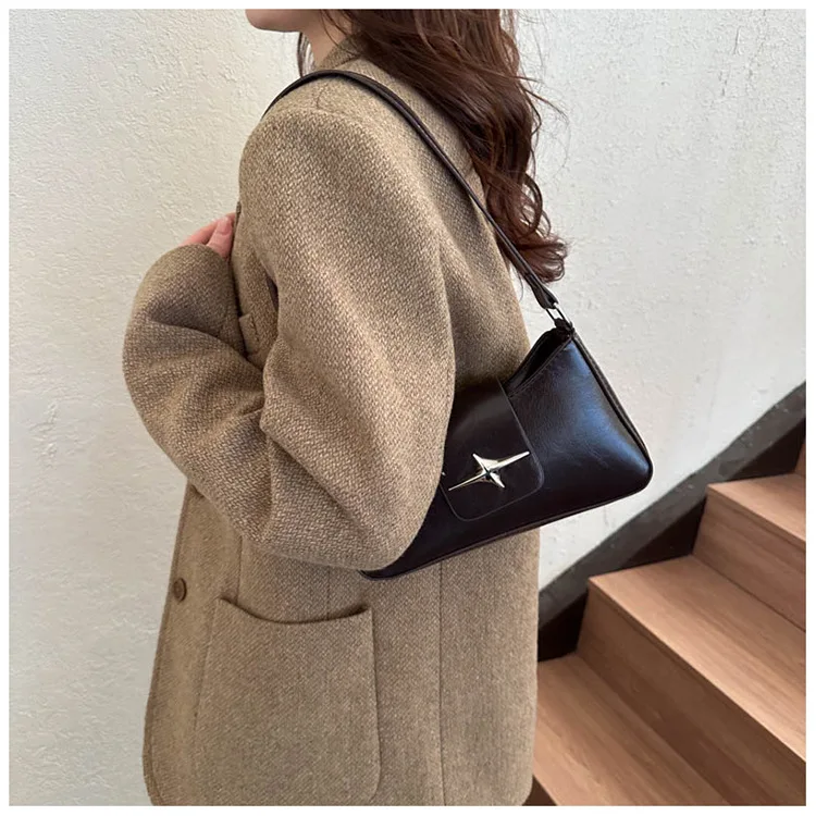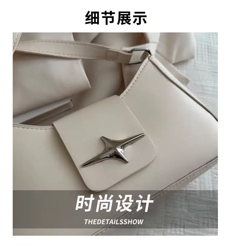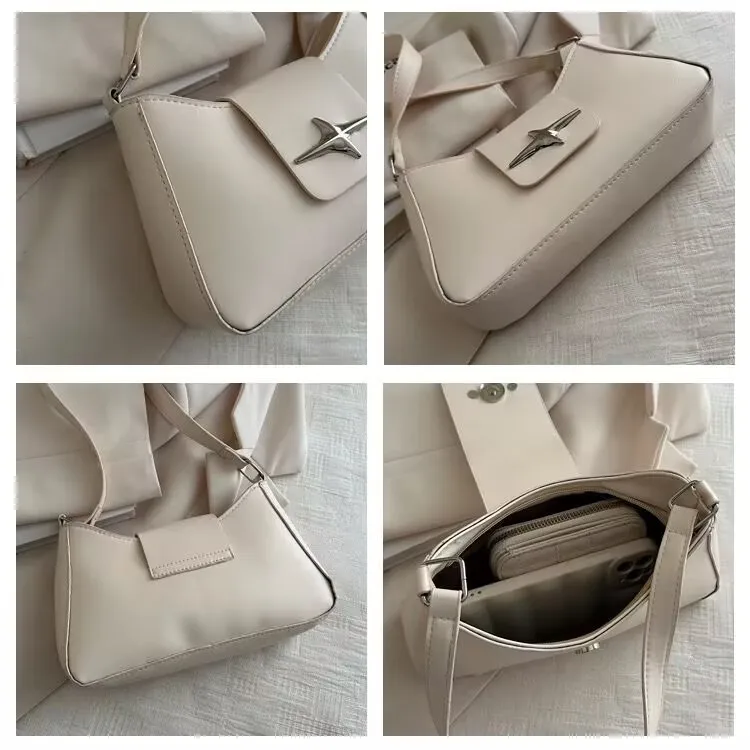 Solid color armpit bag, women's fashion new style | Casual texture shoulder bag, summer minimalist baguette bag