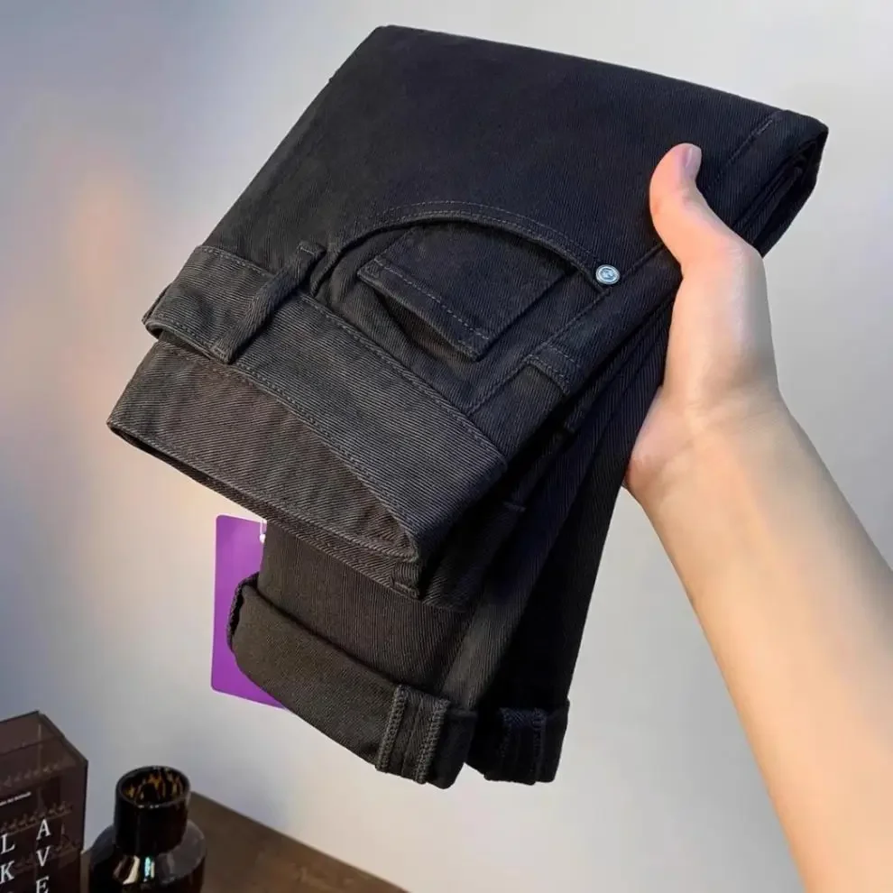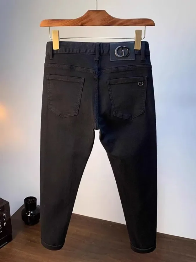 Spring Autumn Men's Elastic Slim Fit Casual Jeans Trendy Loose High End Brand Fashionable Long Trousers Popular Style