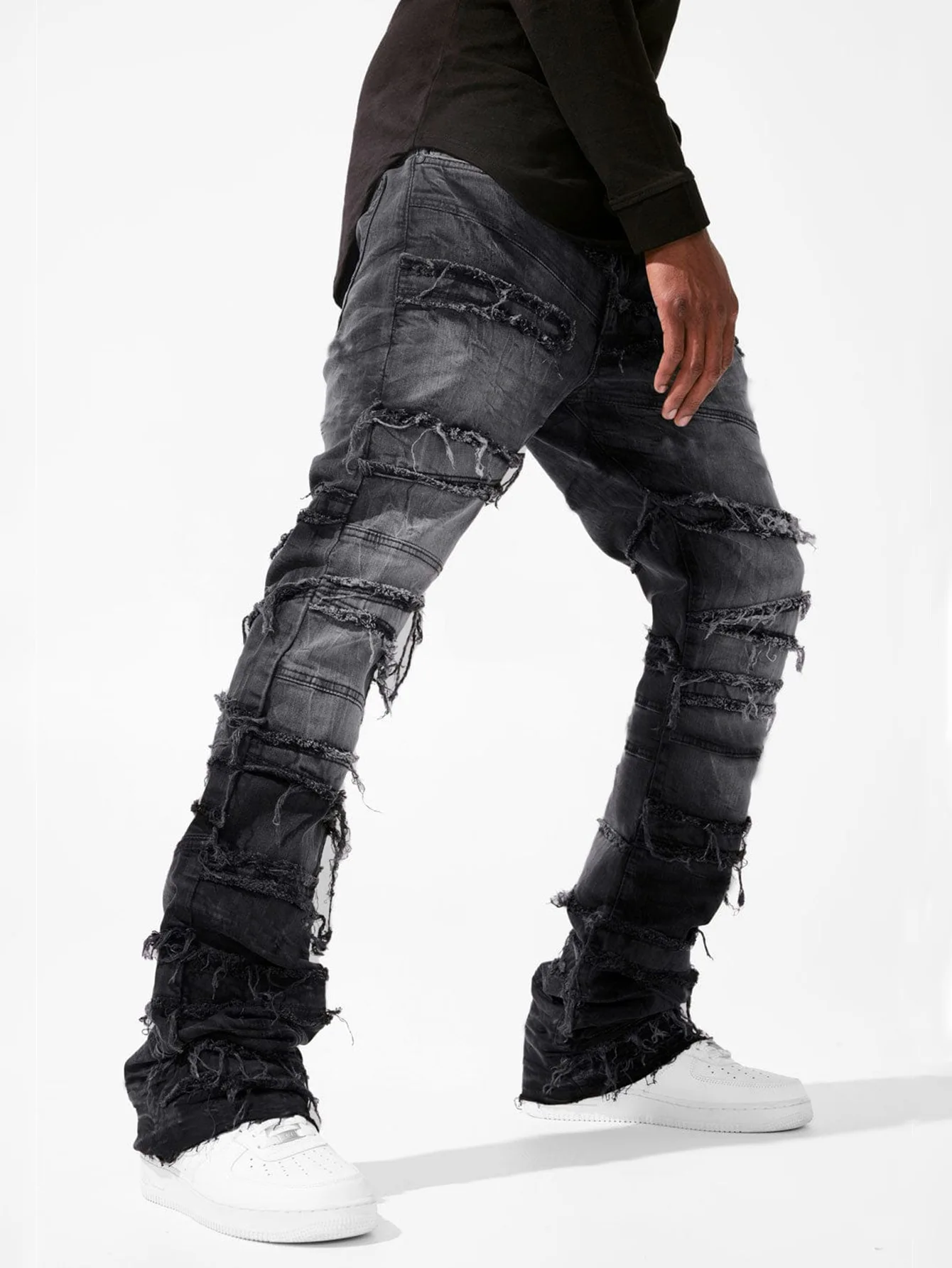 Straight Pant Men Jeans Denim Pants Slim Fit Irregular Folds Tassel Splice Simple Button Pocket High Street Trousers Spring