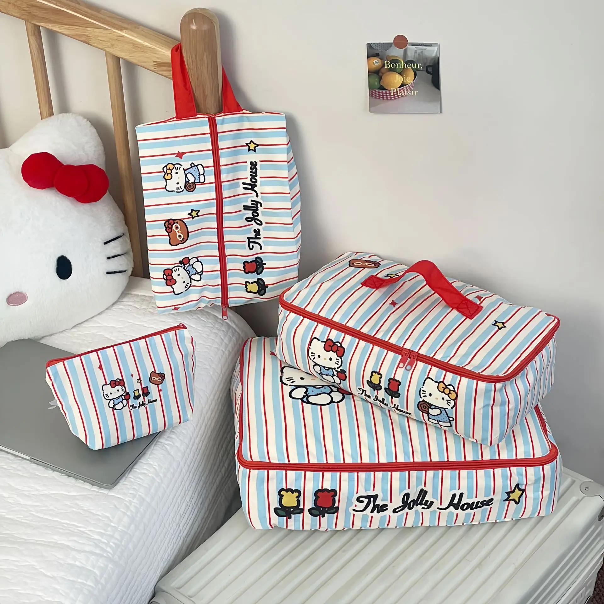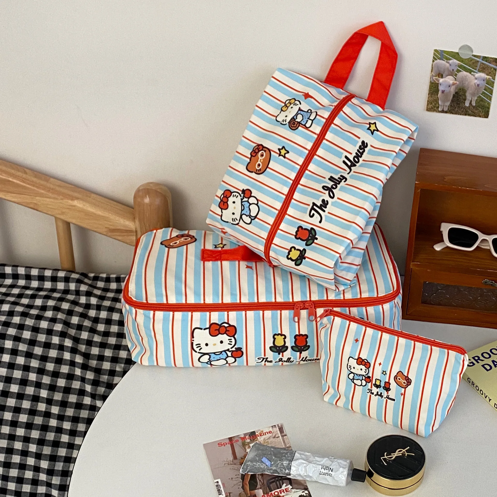 Striped Cat Travel Organizer Bag Portable Luggage Storage Pouch For Trip Business Hand Carry Cosmetic Case