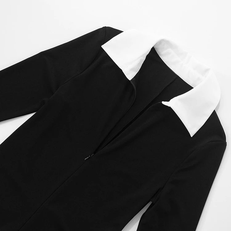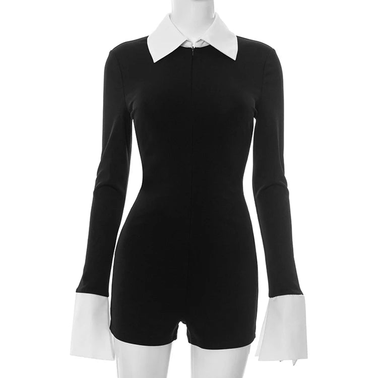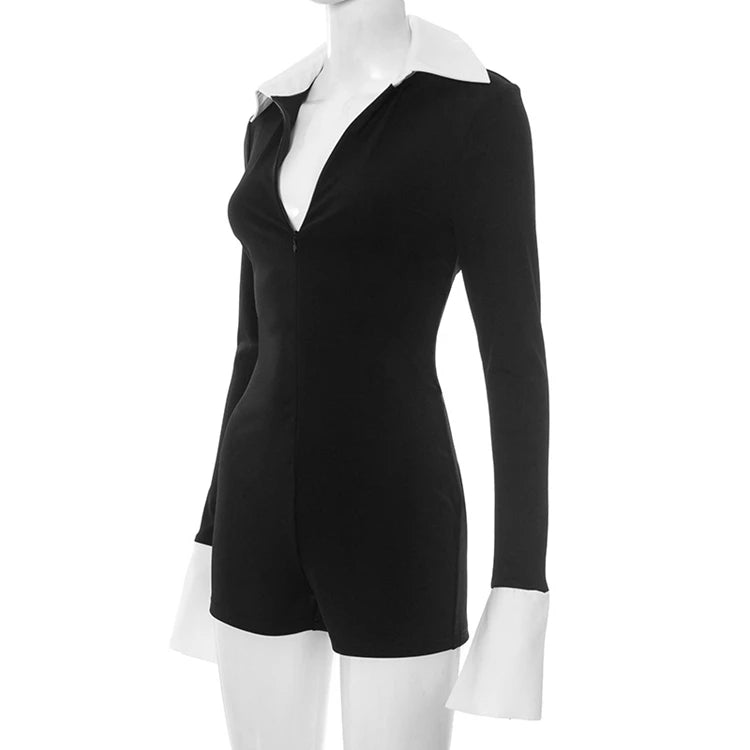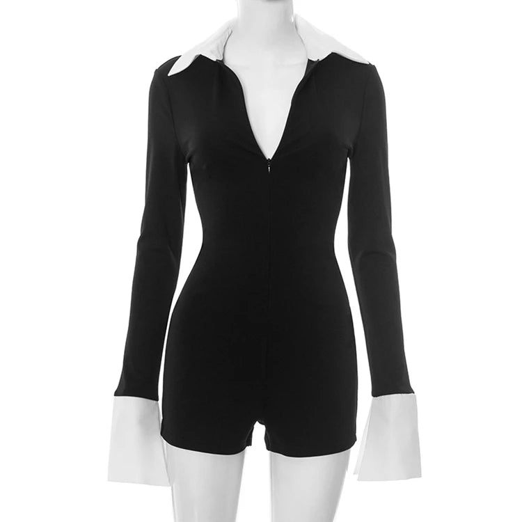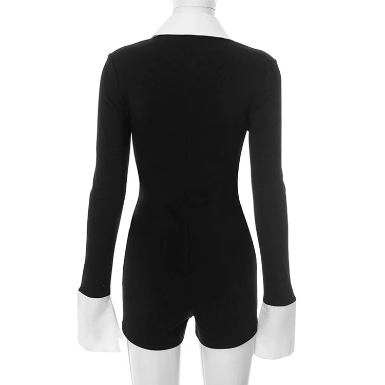 STYLISH LADY Contrast Color Elegant Playsuits 2025 Summer Women Long Sleeve V Neck Bodycon Sexy Club Party Short Rompers