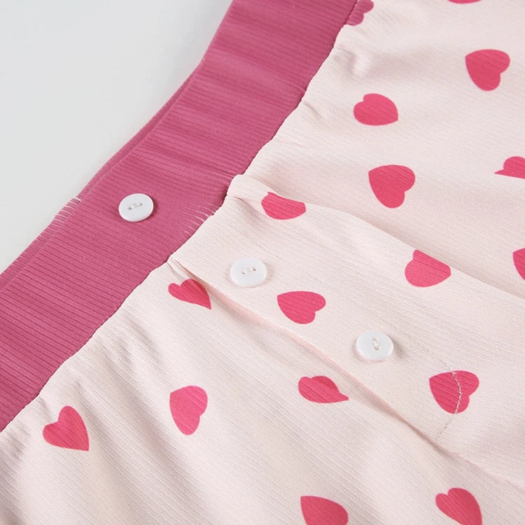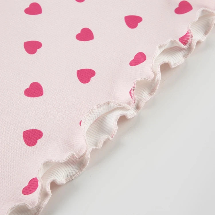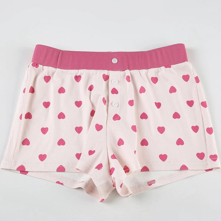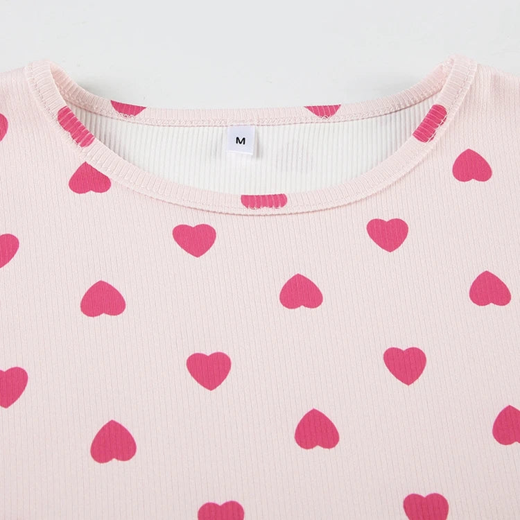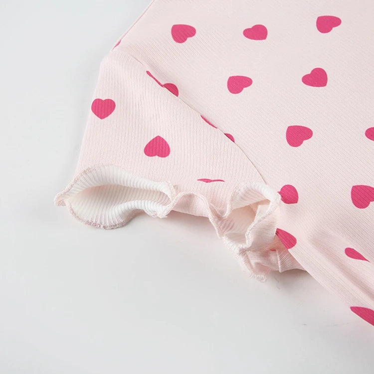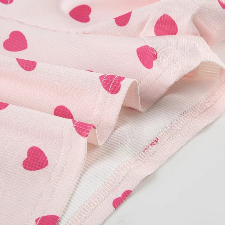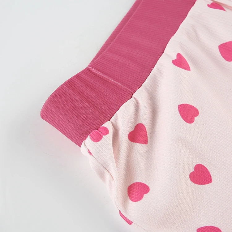 STYLISH LADY Heart Printed 2 Piece Set Women Short Sleeve Crop Top and Shorts Suits 2025 Summer Valentine's Day Home Sleepwear