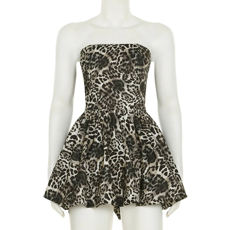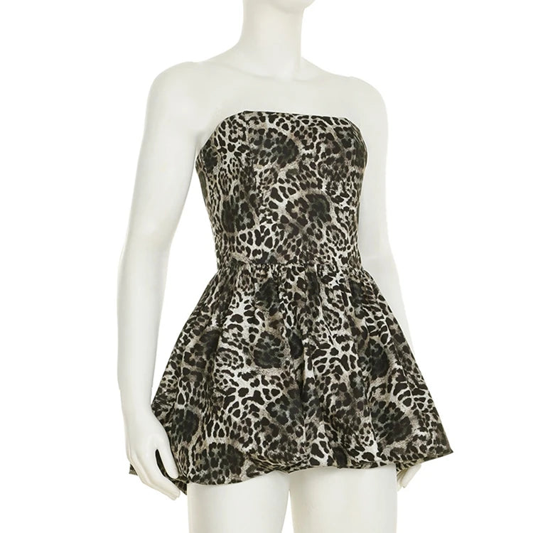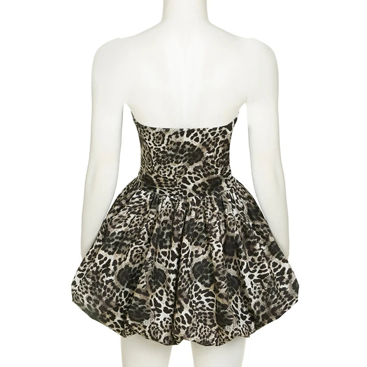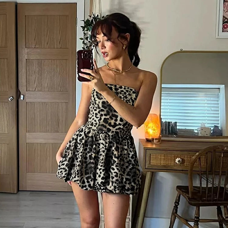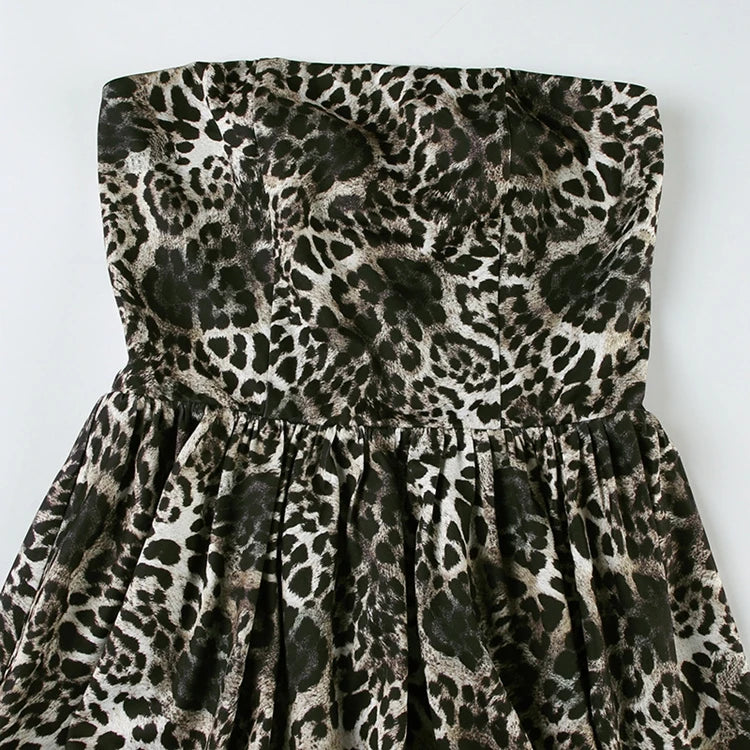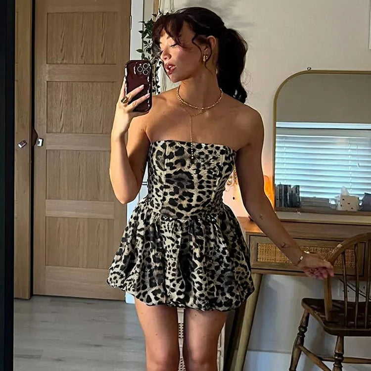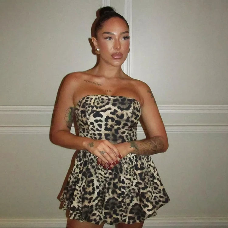 STYLISH LADY Leopard Printed Bud Dress 2025 Spring Strapless Backless Patchwork Sexy Club Party Mini Vestidos De Festa