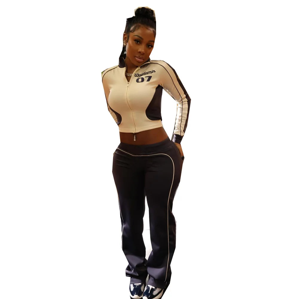STYLISH LADY Letter Printed 2 Piece Set Women Long Sleeve Crop Top and Skinny Pant Suits 2025 Summer Casual Street Tracksuits