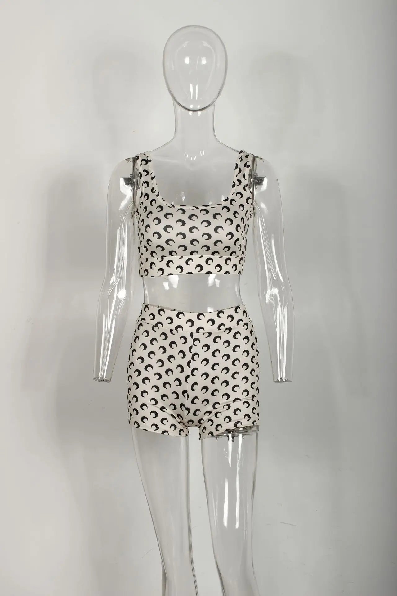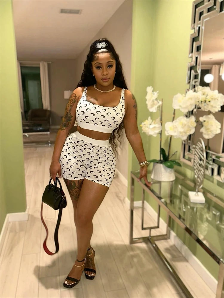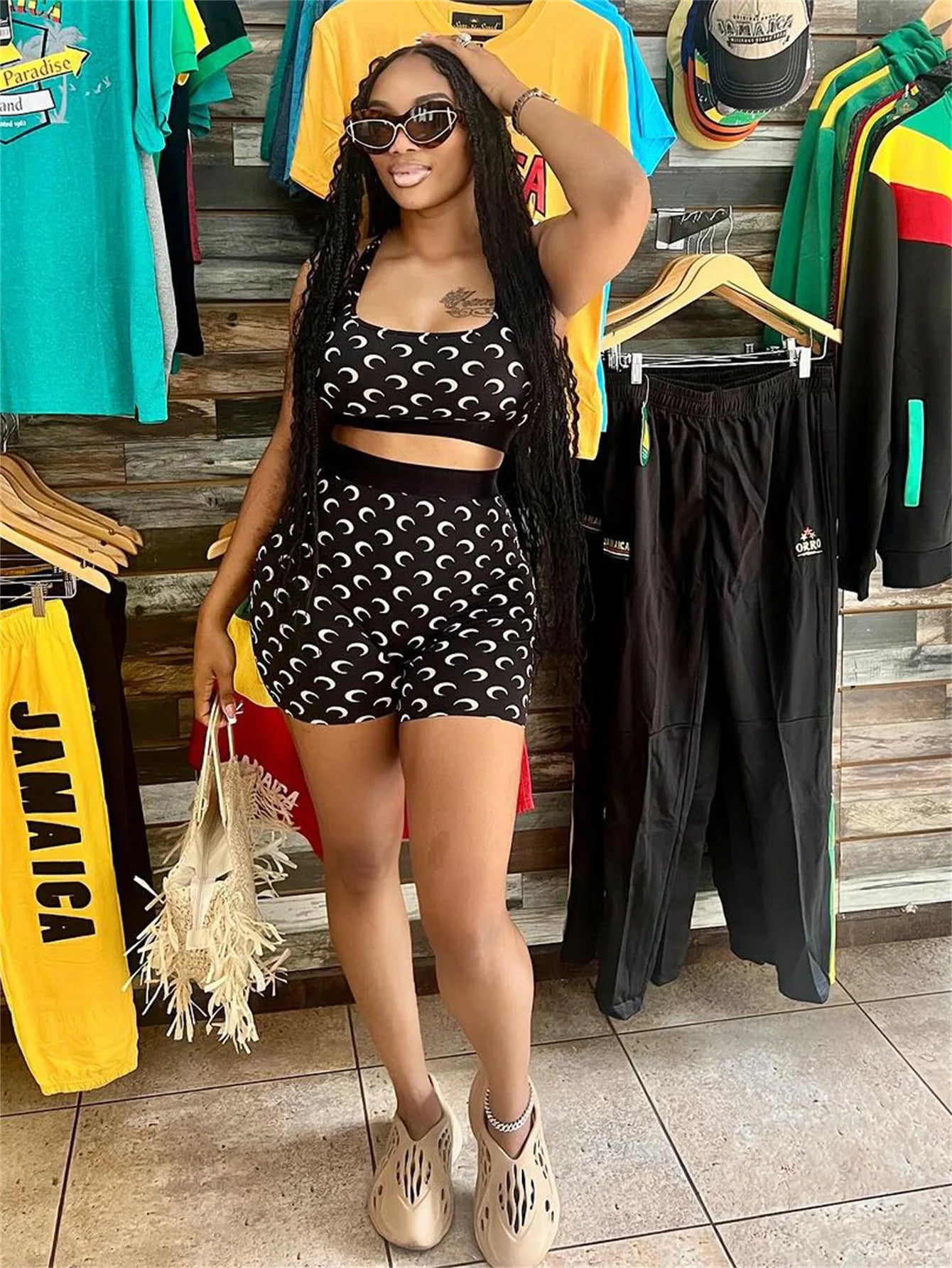 STYLISH LADY Moon Printed 2 Piece Set Women Sleeveless Crop Top and Shorts Suits 2025 Summer Sexy Club Party Fitness Outfits