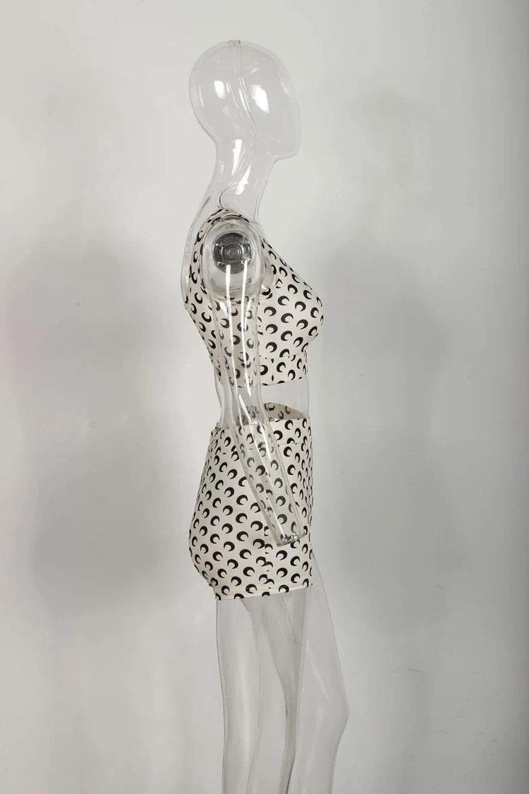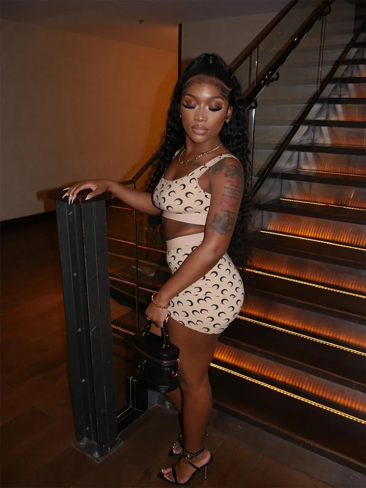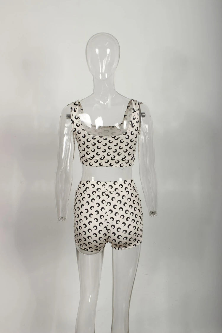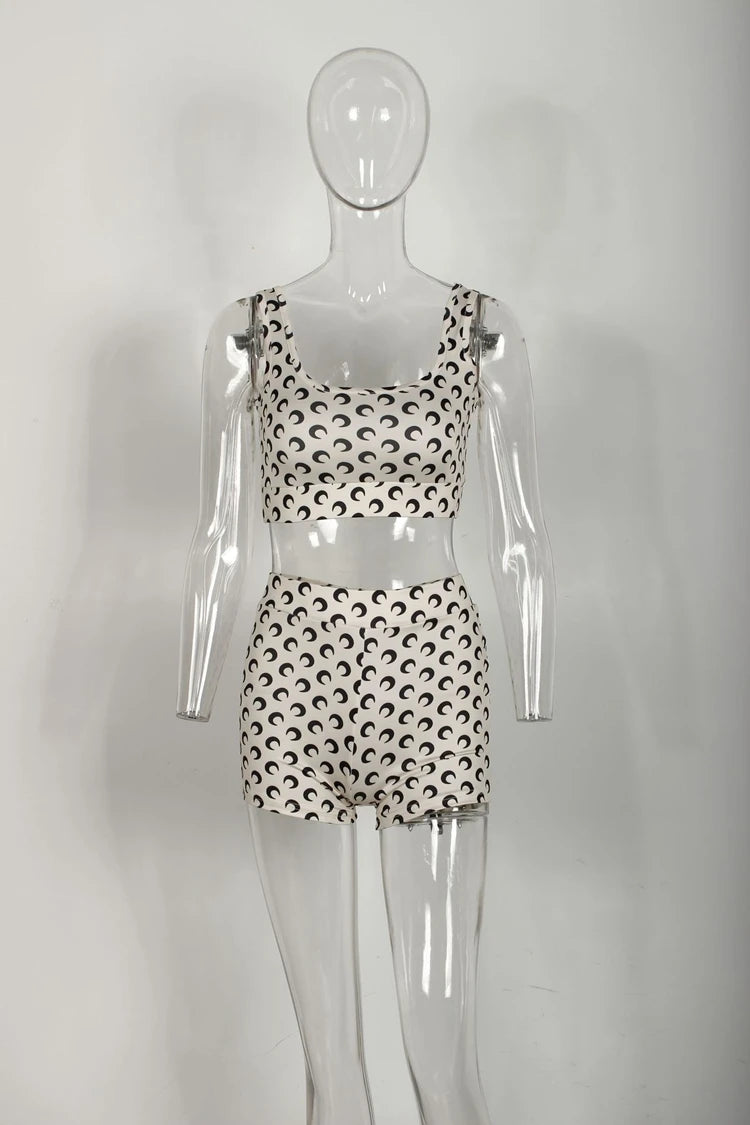 STYLISH LADY Moon Printed 2 Piece Set Women Sleeveless Crop Top and Shorts Suits 2025 Summer Sexy Club Party Fitness Outfits