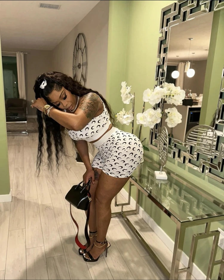 STYLISH LADY Moon Printed Fitness 2 Piece Set Women Sleeveless Crop Top and Shorts Suits 2025 Summer Club Street Sports Outfits