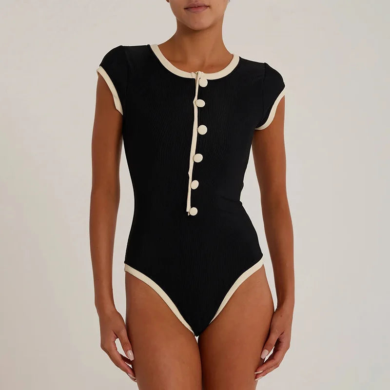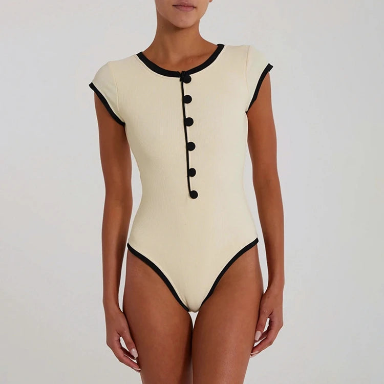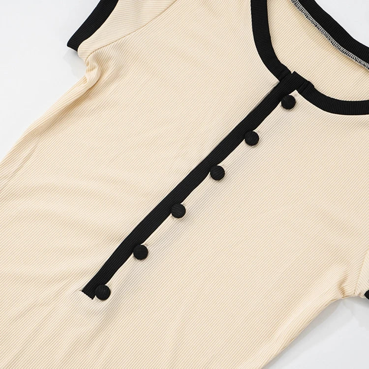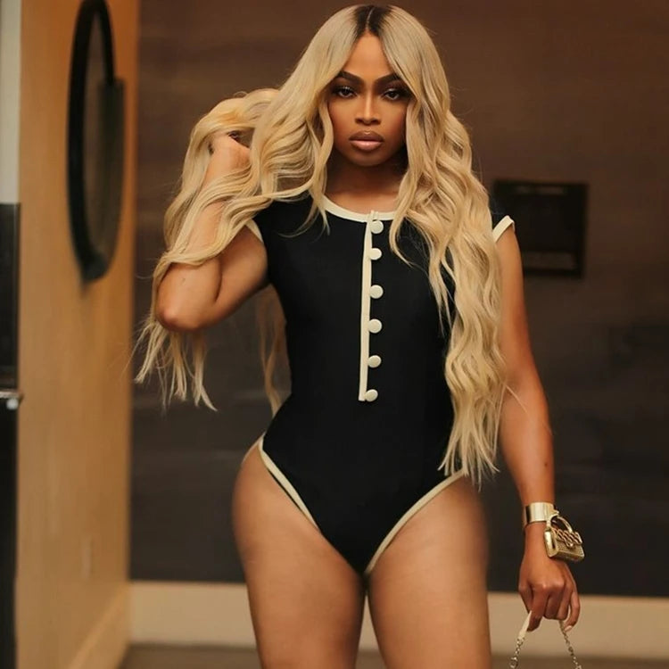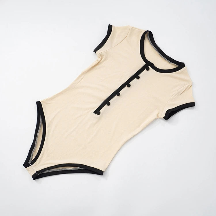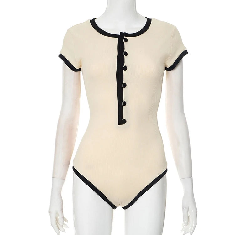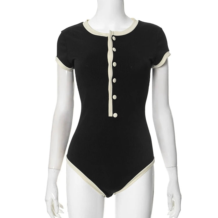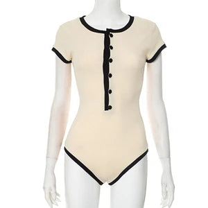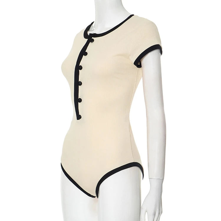 STYLISH LADY Ribbed Button Bodysuits 2025 Summer Women Short Sleeve O Neck Black Nude Sexy Club Street Bodycon Rompers
