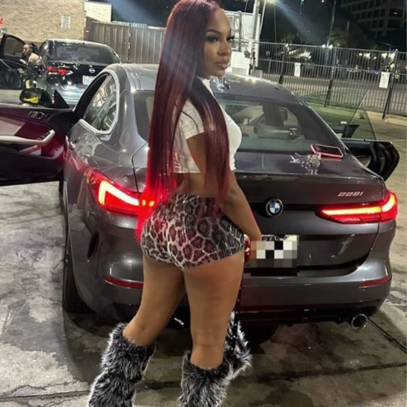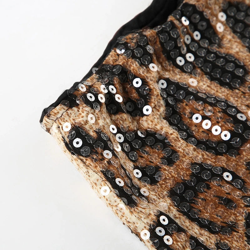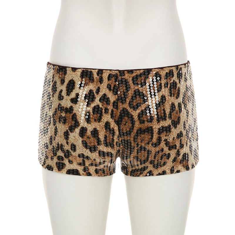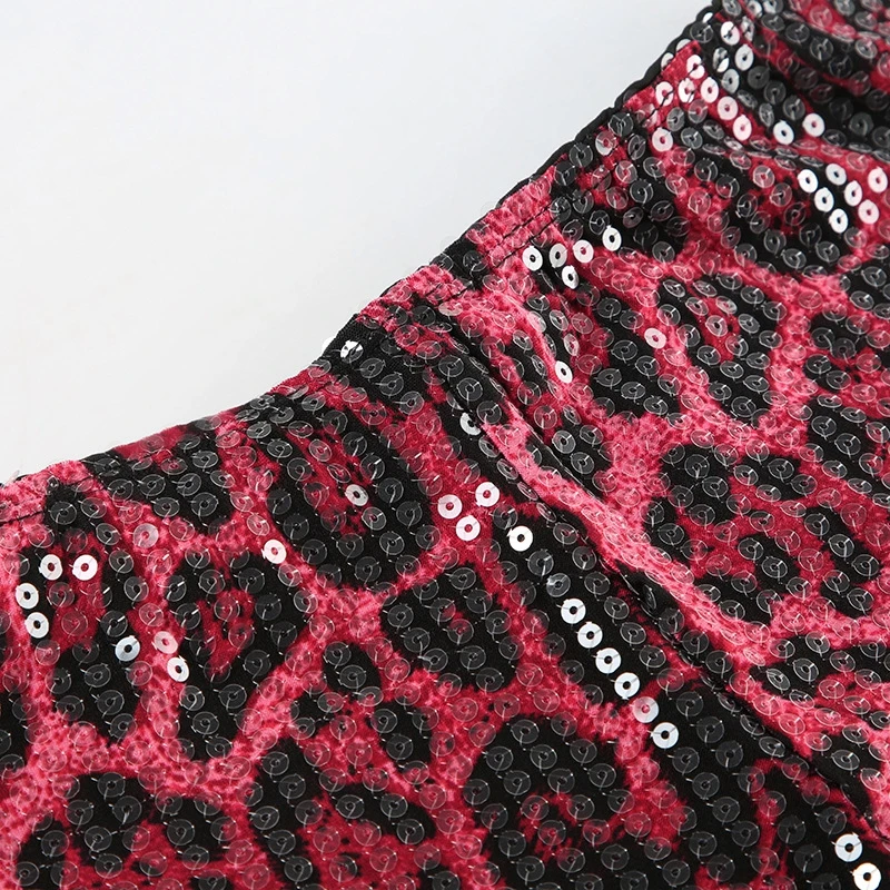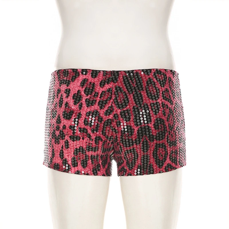 STYLISH LADY Shiny Sequined Pink Leopard Printed Shorts 2025 Summer Women High Waist Luxury Spicy Girl Sexy Clubwear Short Pants