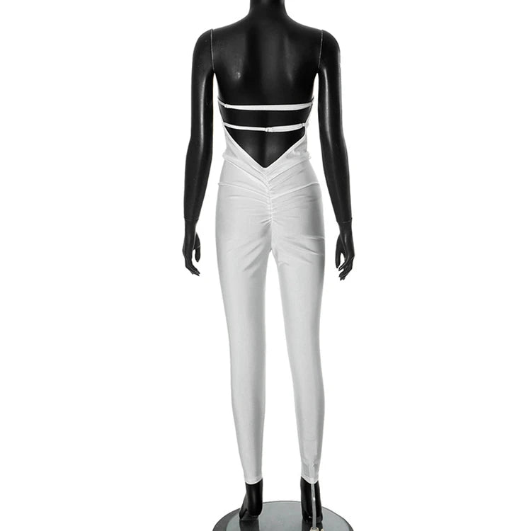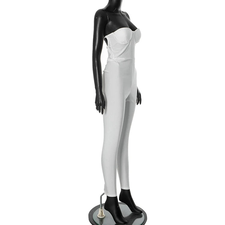 STYLISH LADY Strapless Backless Padded Jumpsuits 2025 Summer Solid Color Sexy Night Club Bodycon One Piece Overalls Streetwear