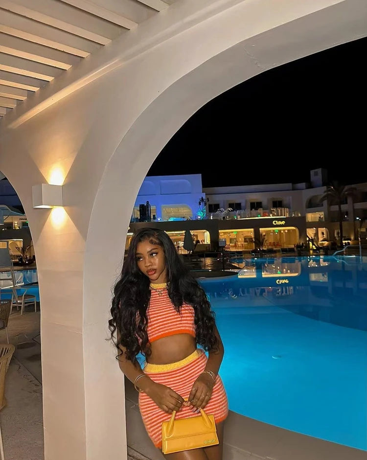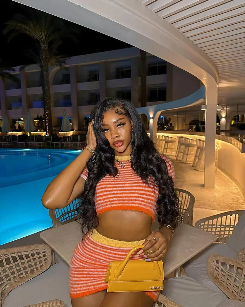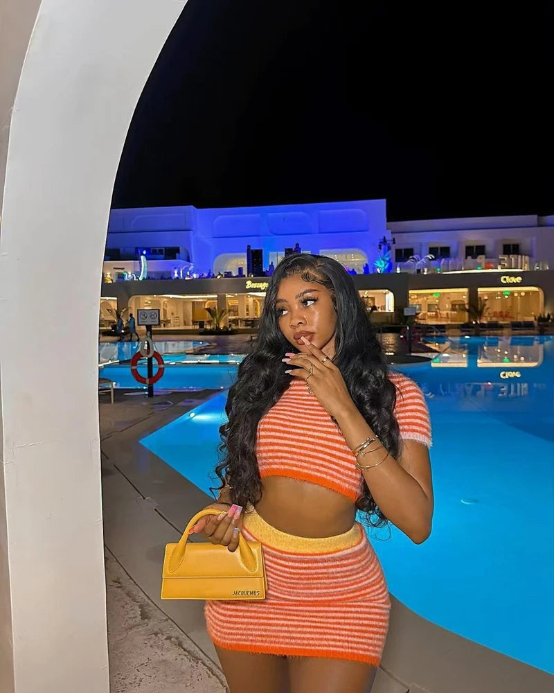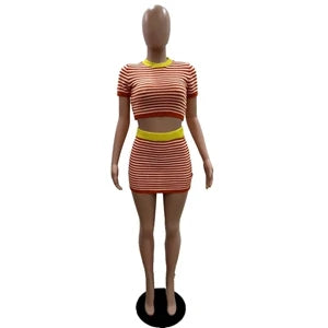 STYLISH LADY Striped Printed Knitted 2 Piece Set Women Short Sleeve Crop Top and Mini Skirt Suits 2025 Summer Sexy Club Outfits
