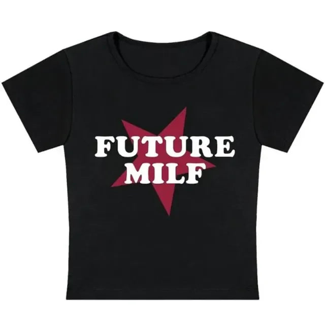 Summer Harajuku Y2k Streetwear With Exposed Navel Slim Fit Short Sleeved Sexy Party Future Milf Star Fashionable ladies T-shirt