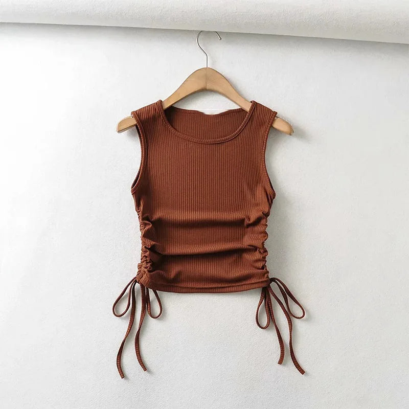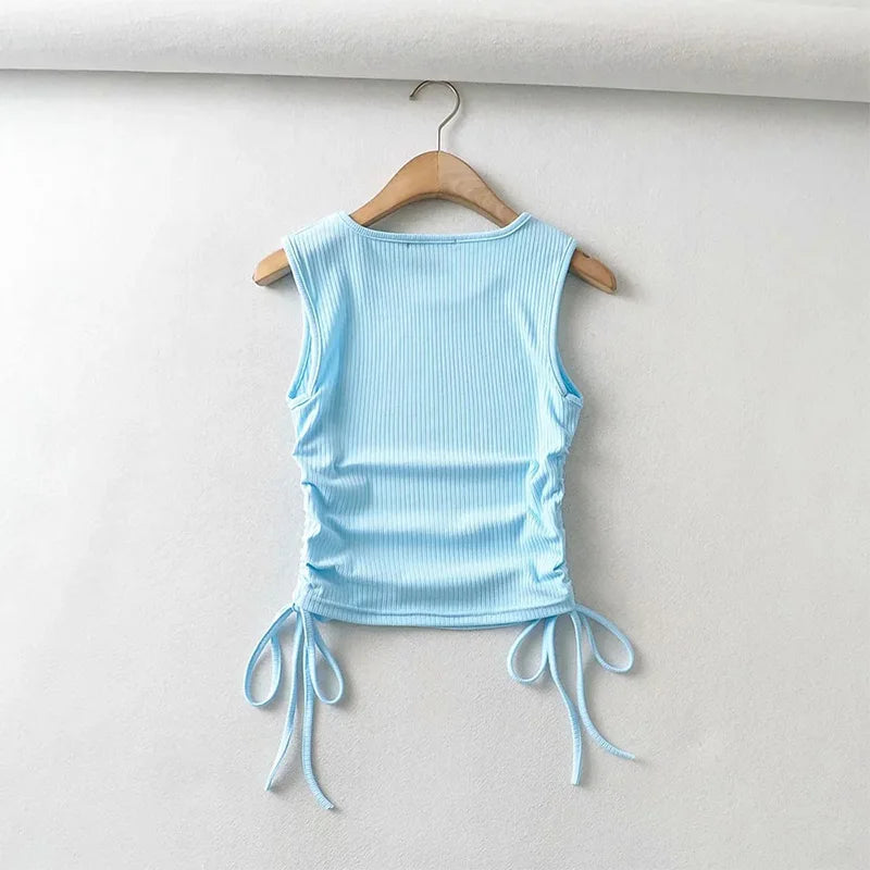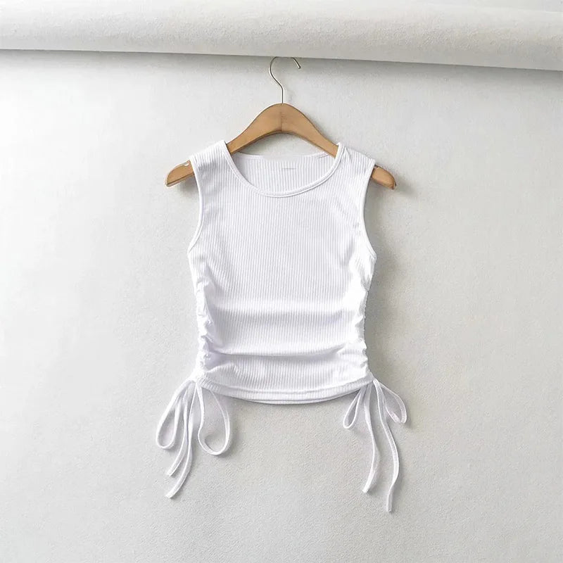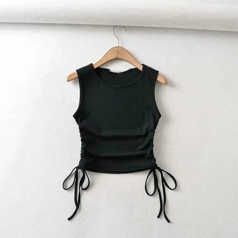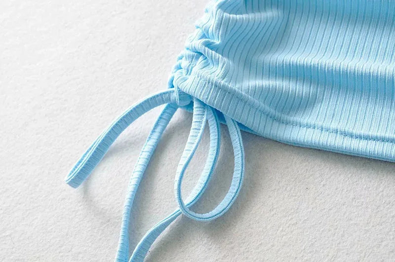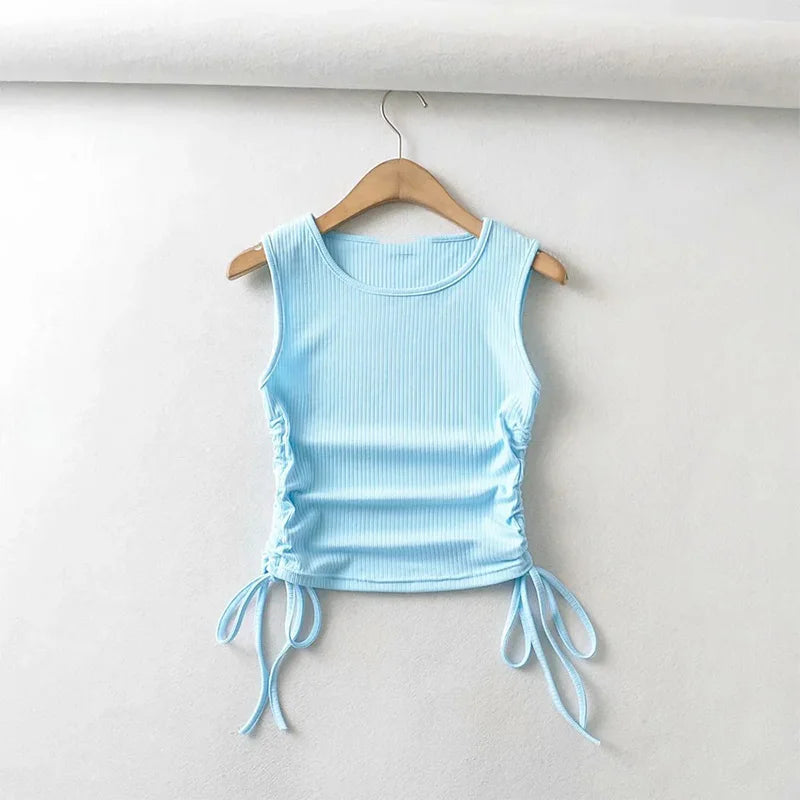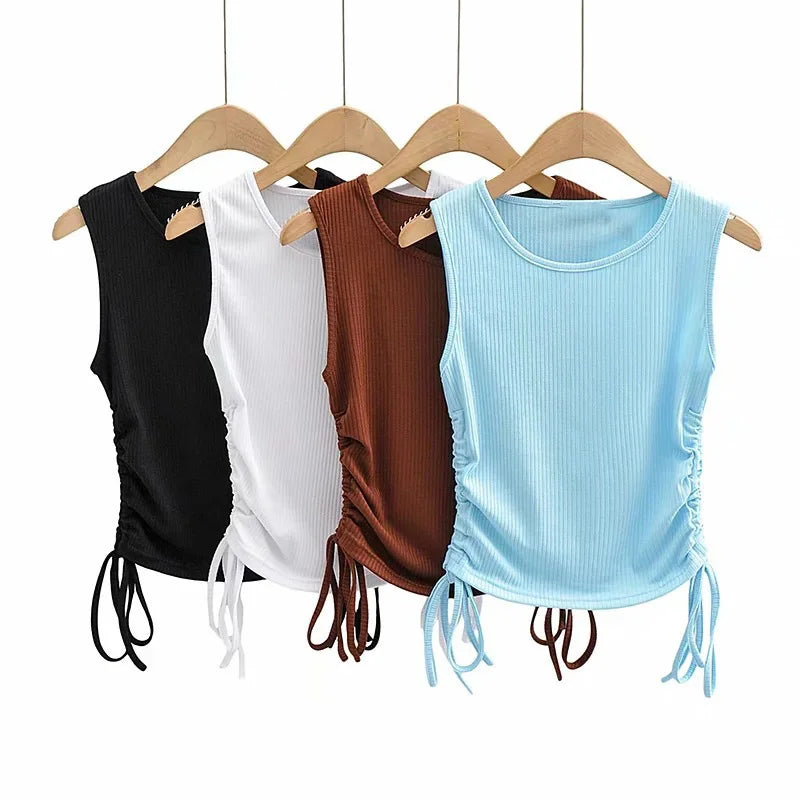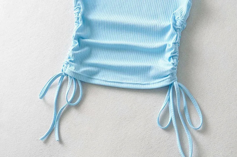 Summer NEW Arrival Women Solid Color Sexy Causal Crop Top With String Both Side Club For Fashion Ladies