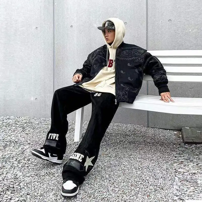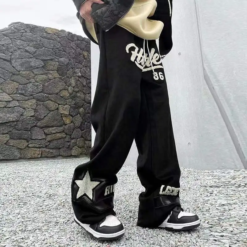 Summer New Casual Pants Men Retro Fashion Straight Pants Men Streetwear Drawstring Letter Hip-hop Trend Loose Balck Trousers