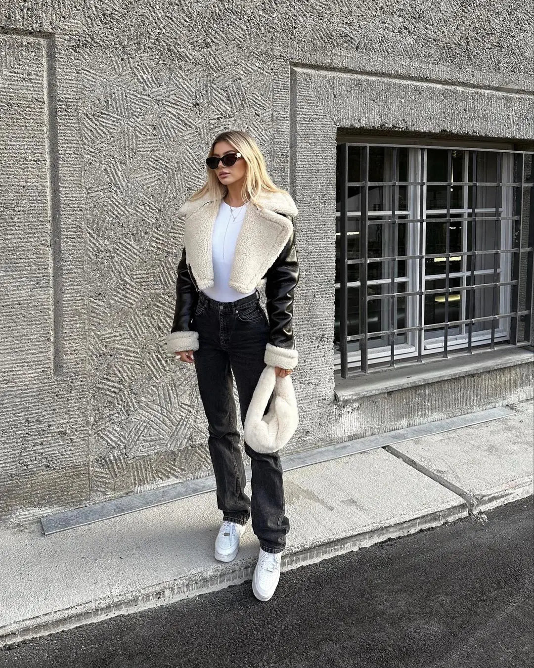 Suninheart Fashion Double Sided Short Jacket Women Warm Thick Lapel Lambswool Coat Autumn Winter Vintage Female Fleece Chic Tops
