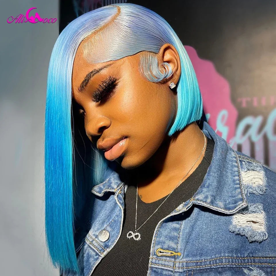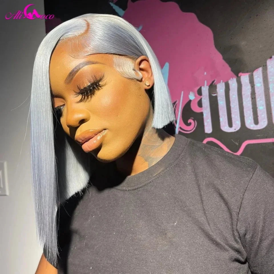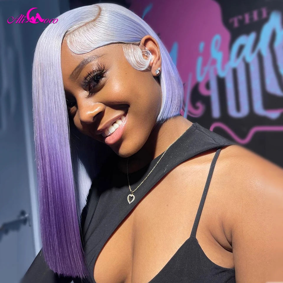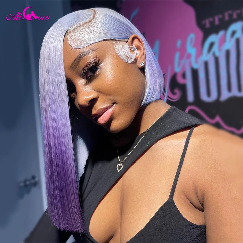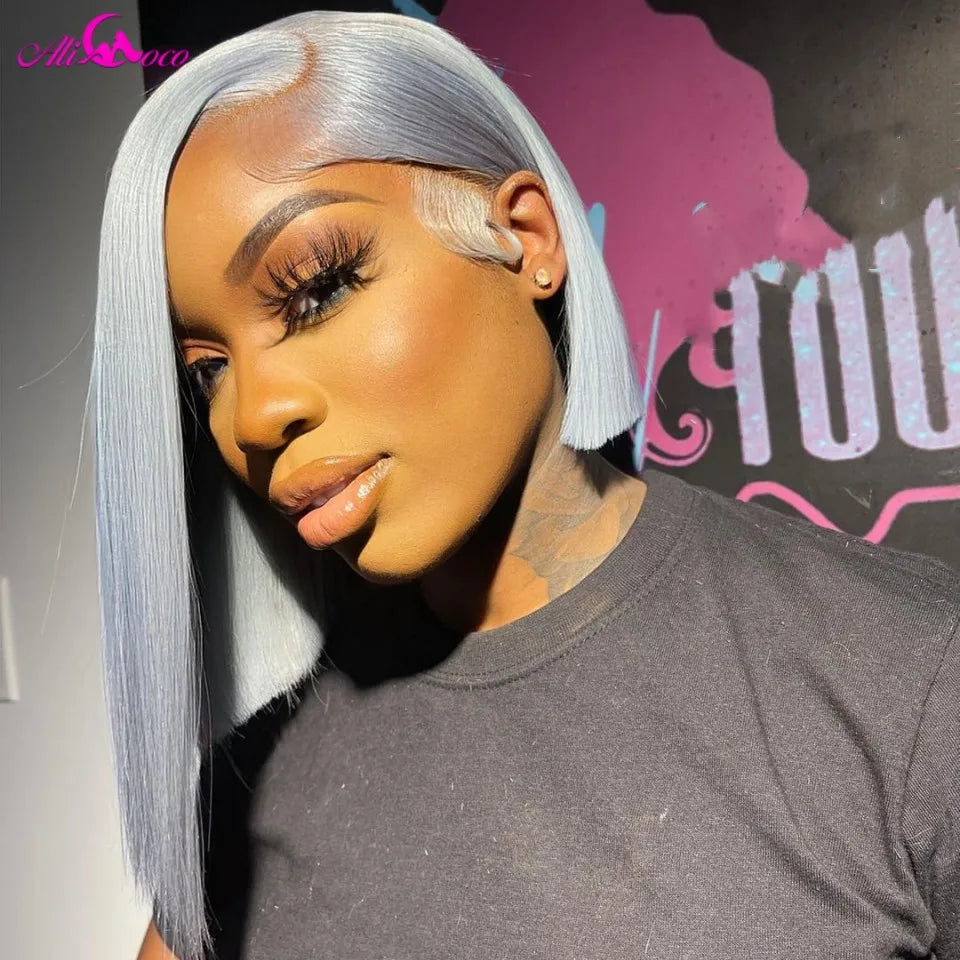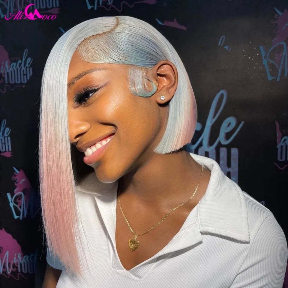 #T Grey Blue Purple Pink Colored Wigs Short Bob Wig 13x4 Lace Frontal Human Hair Wigs For Women Bob Brazilian Frontal Wigs