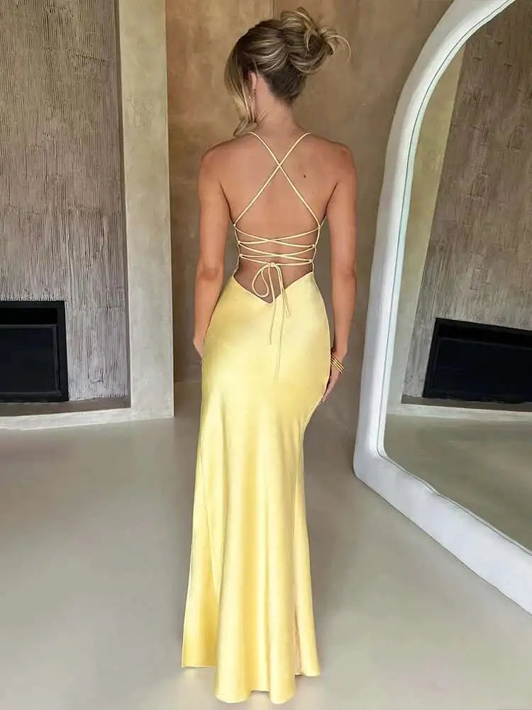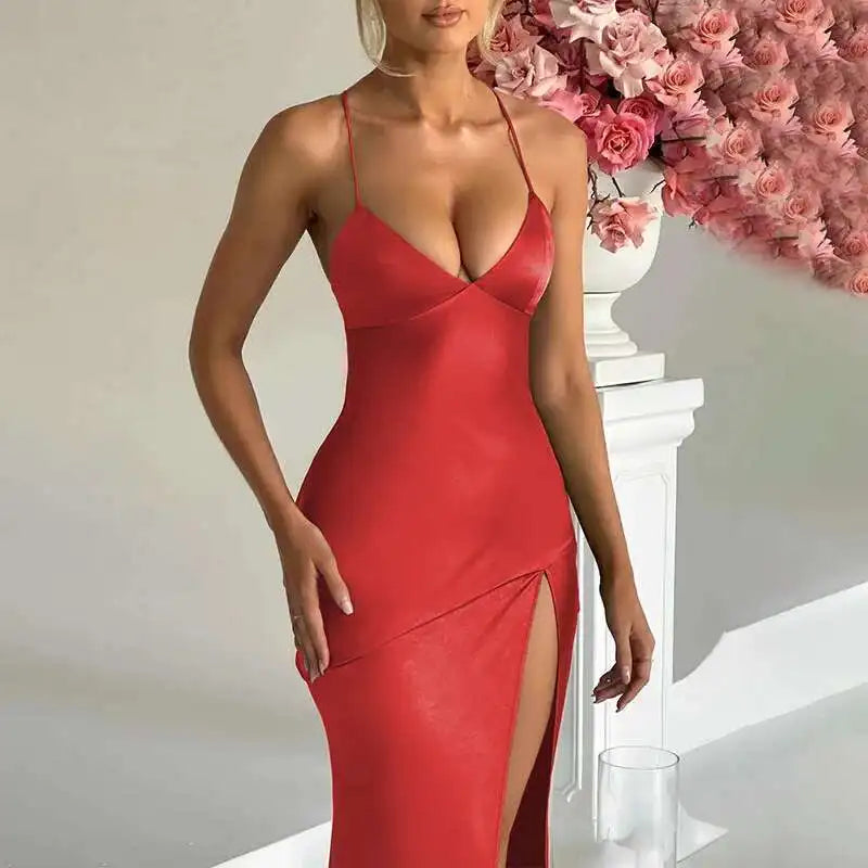 Townlike Elegant Maxi Long Slim Bodycon Dress Women Spaghetti Strap 2024 Sping Summer Dress Split Nightclub Sexy Party Dresses