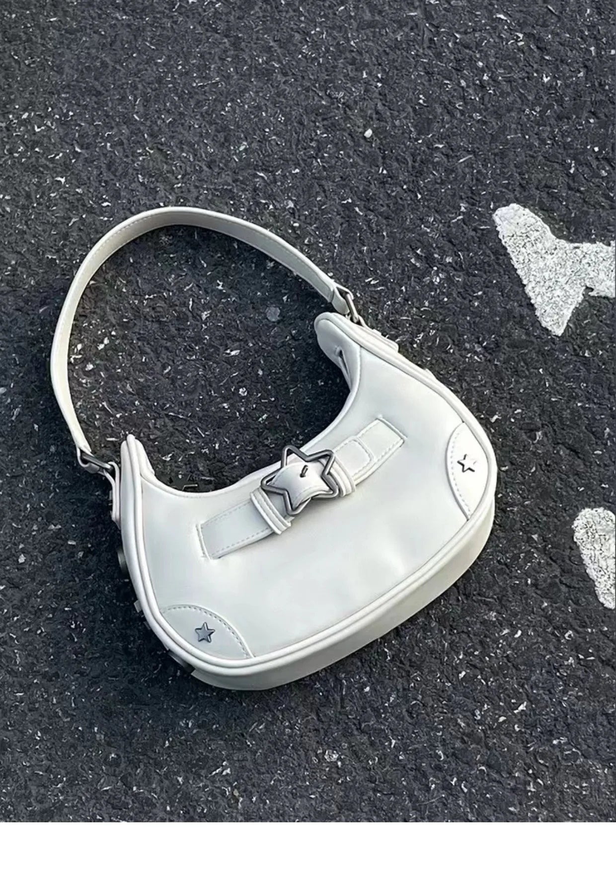 Vintage Korean Casual Cute White Star Shoulder Underarm Tote Bag Ladies Sling Bags Leather Zip Purses Handbags Women