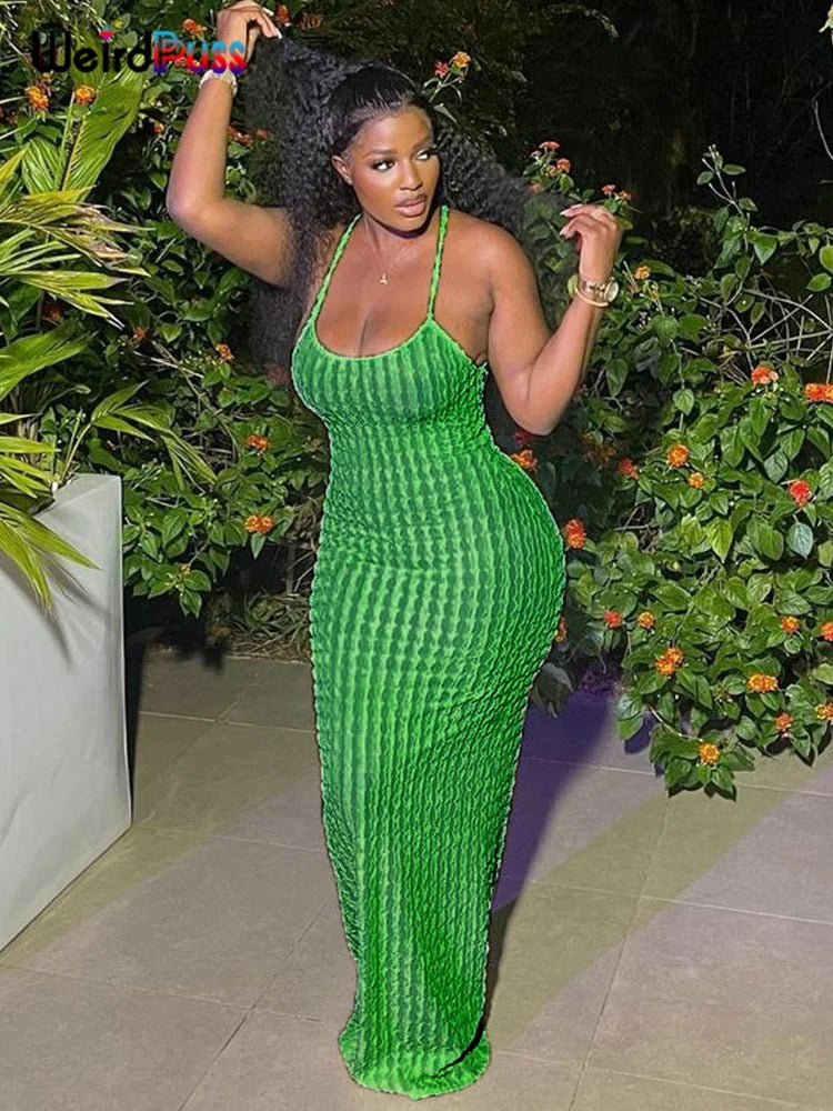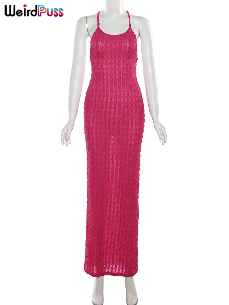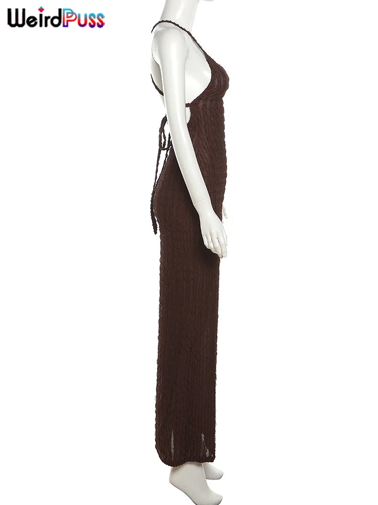 Weird Puss Backless Halter Dress Women Cross Bandage Sleeveless Sexy Elegant Skinny Stretch Wedding Party Maxi Bodycon Vestidos