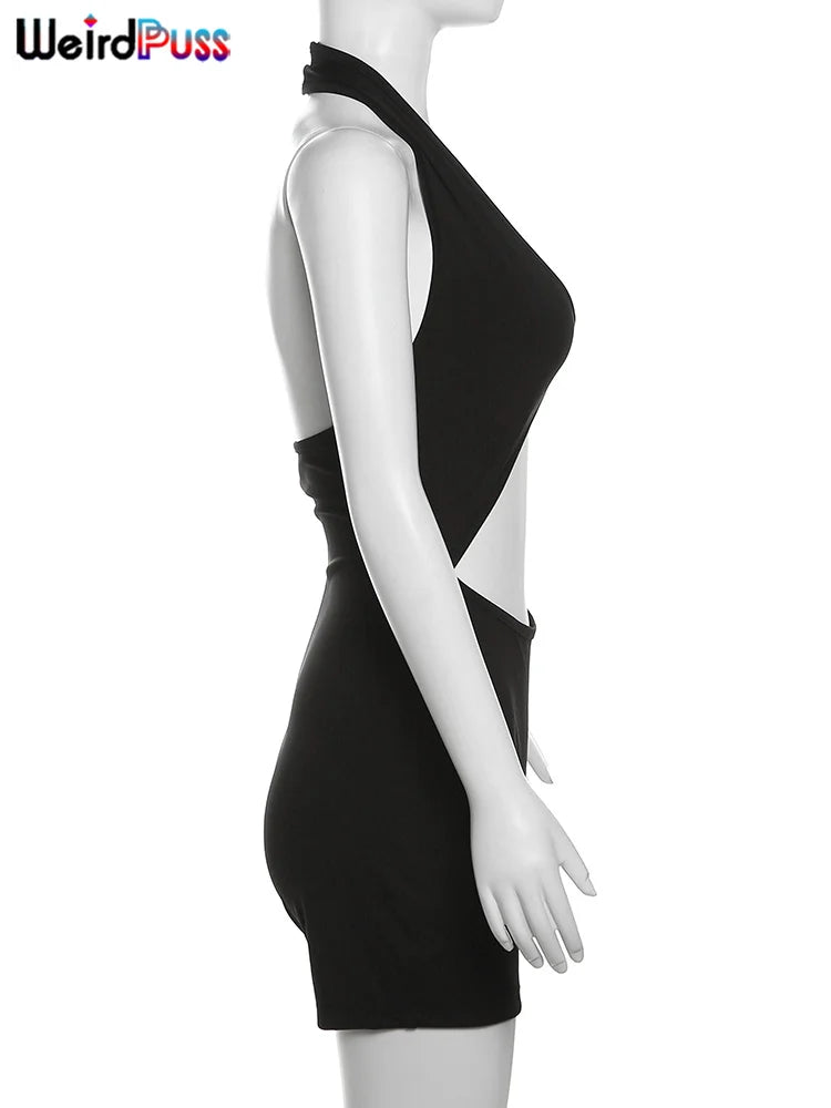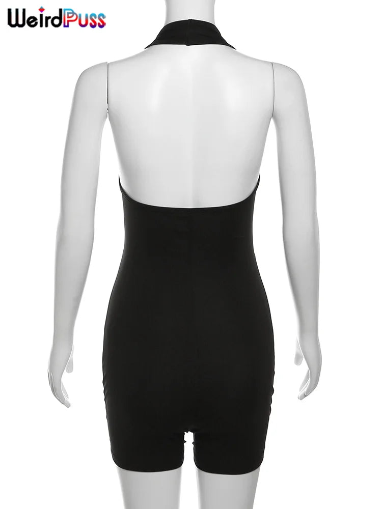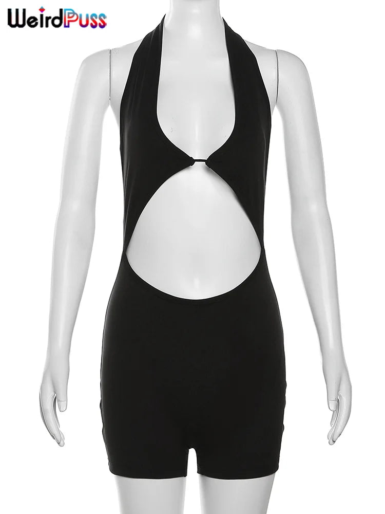 Weird Puss Backless Sexy Women Playsuit Hollow Halter Body-Shaping One Pieces Slim Fit Ladies Yoga Workout Streetwear Bodycon