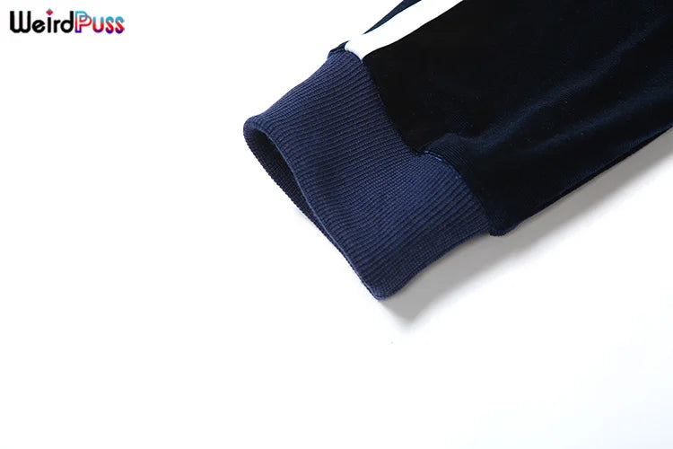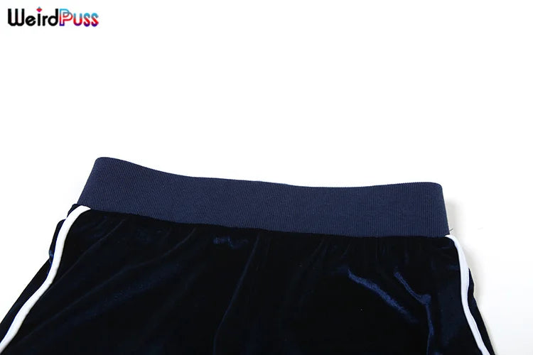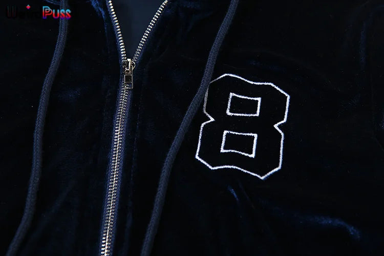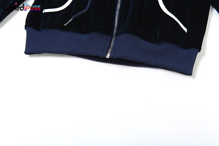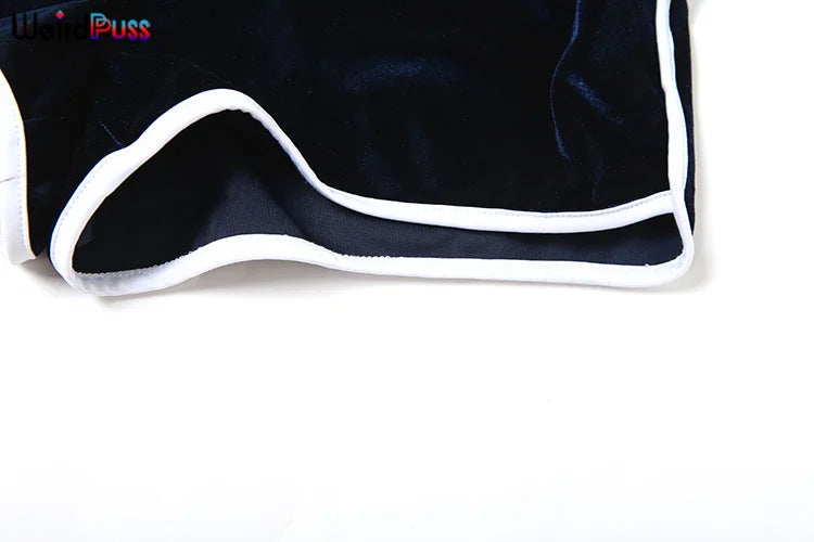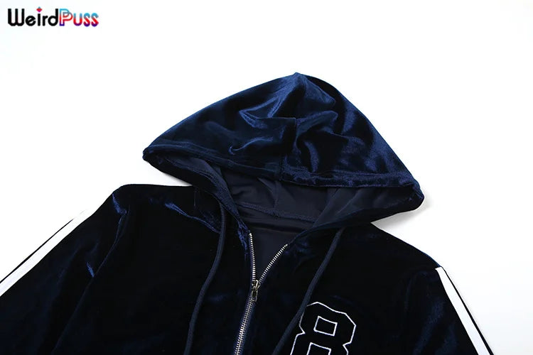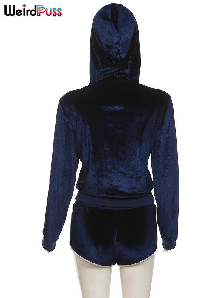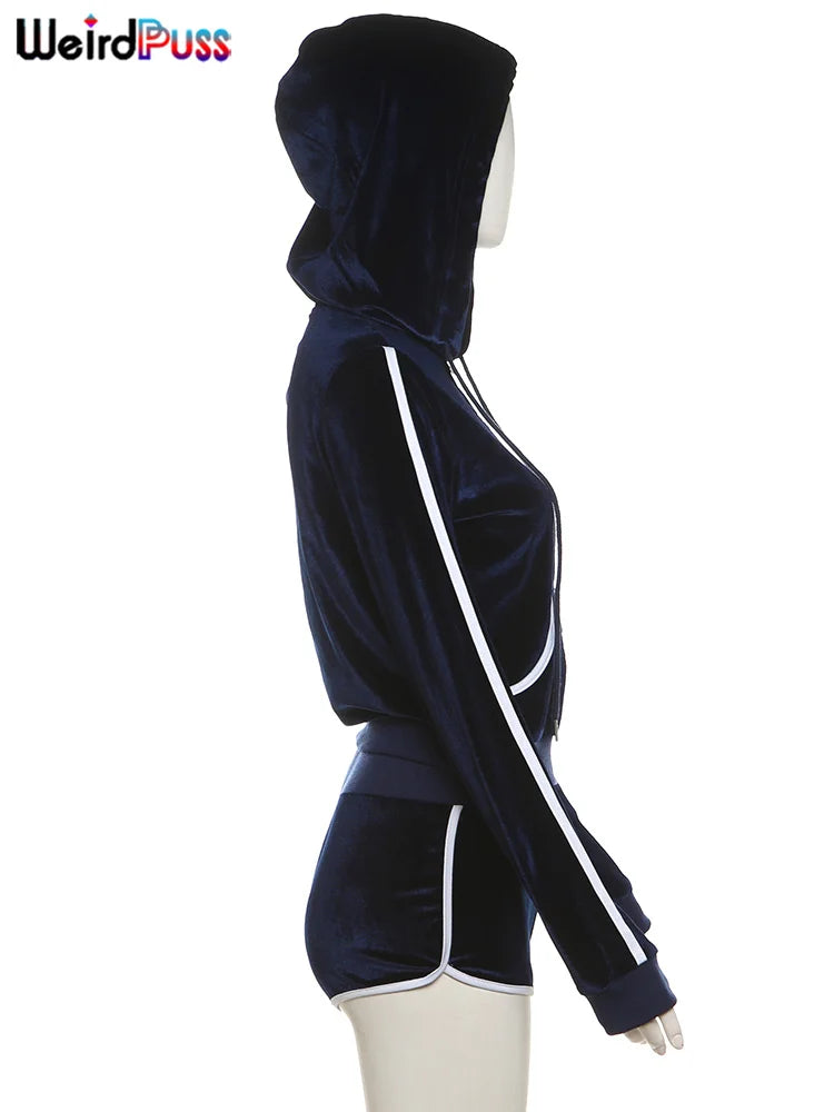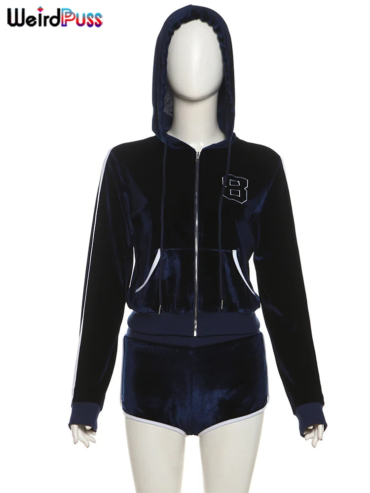Weird Puss Casual Sporty 2 Piece Set Women Hooded Shirring Zipper Number Print Jacket+Contrast Patchwork Mini Shorts Simple Suit