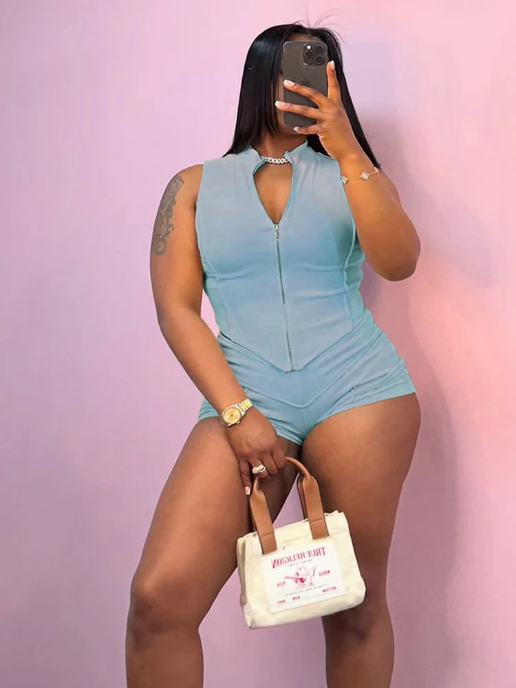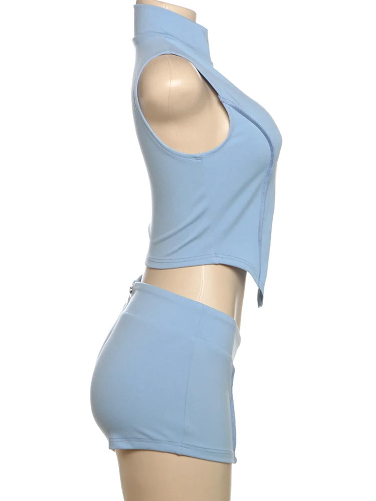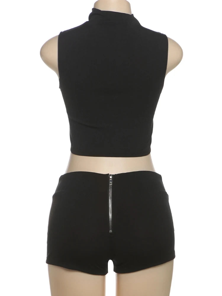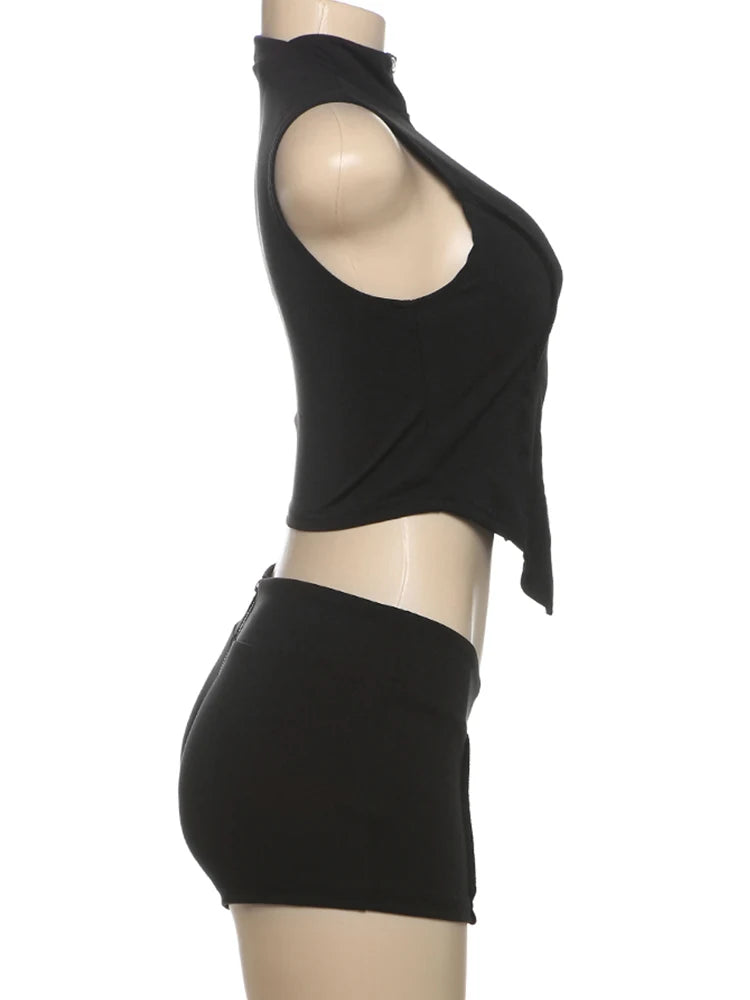 Weird Puss Casual Tracksuit 2 Piece Set Women Irregular Tank Tops+Peach Hip Zip Shorts Daily Simple Skinny Sporty Streetweas