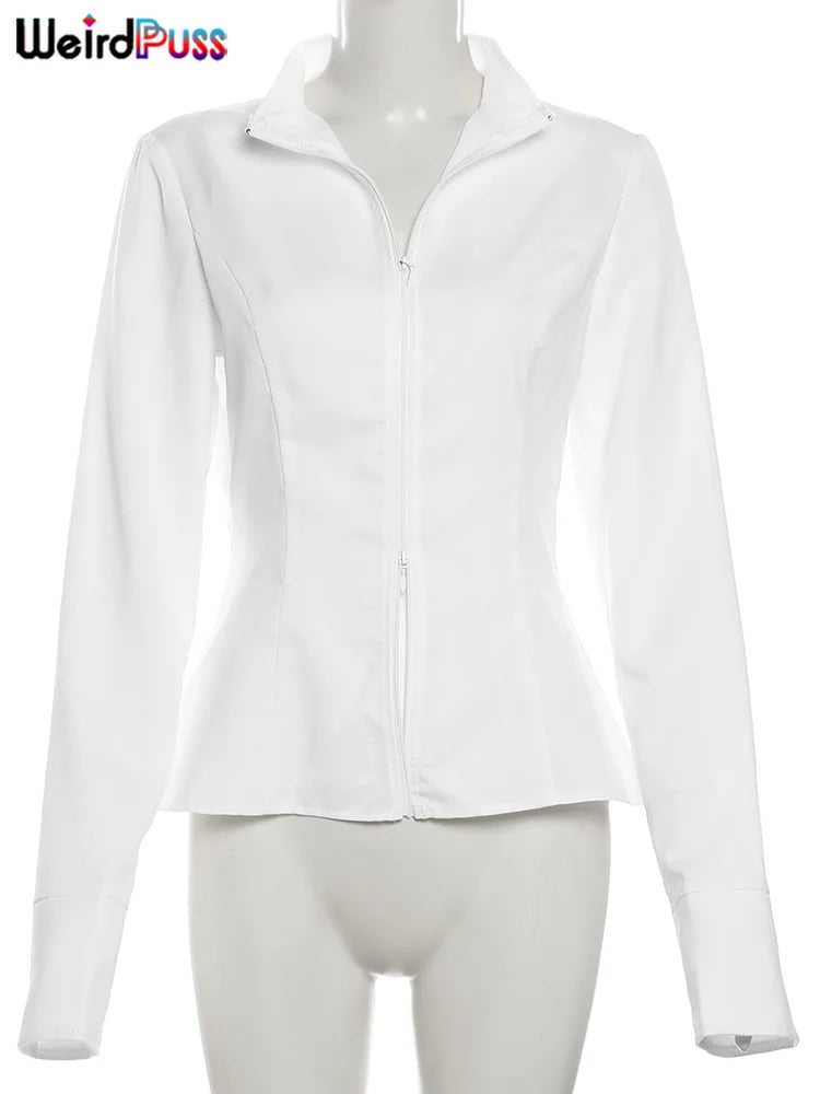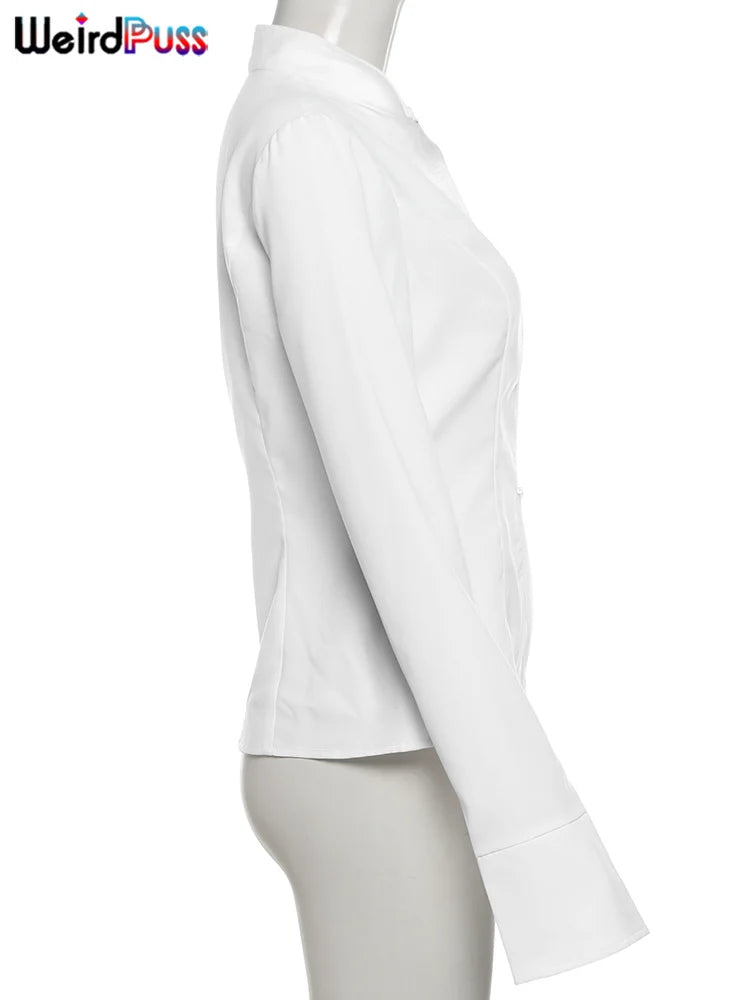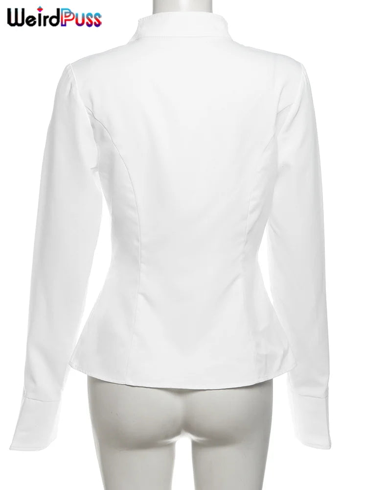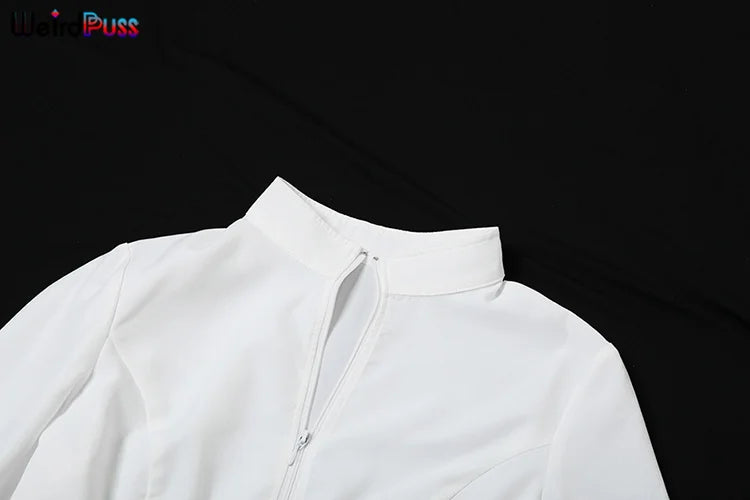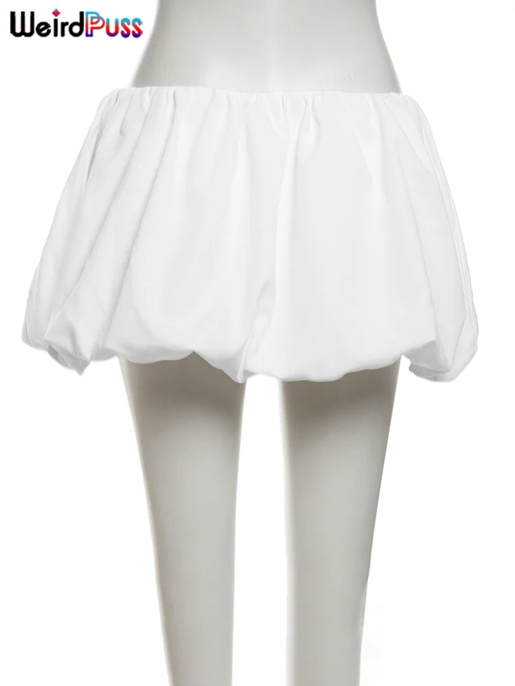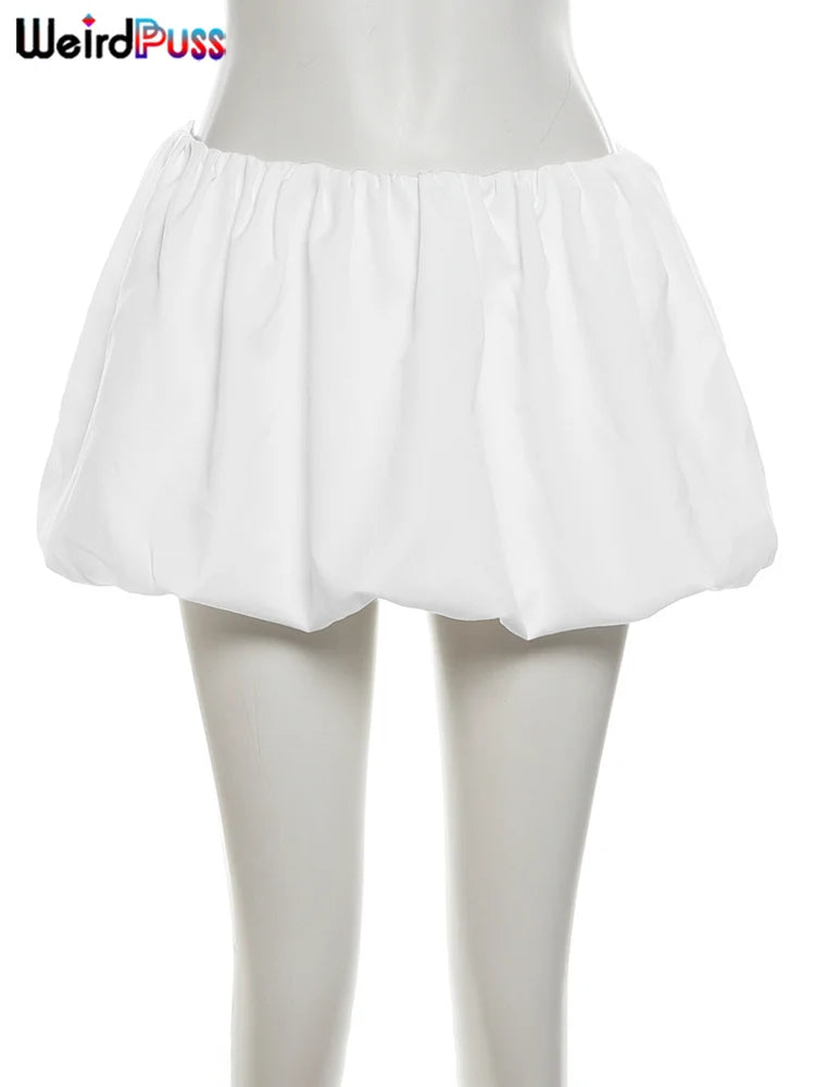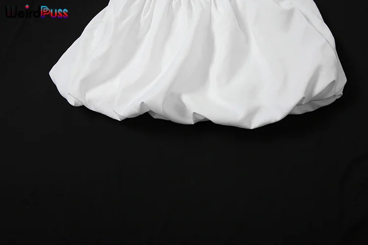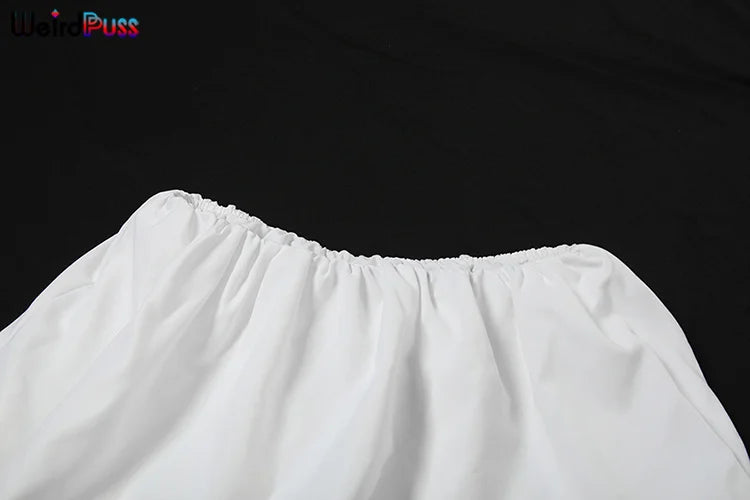 Weird Puss Casual Women 2Piece Set Autumn Trend Skinny Simple Daily Long Sleeve Crop Tops+Puffy Skirt Streetwear Matching Outfit
