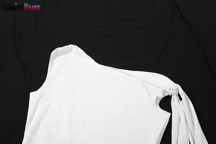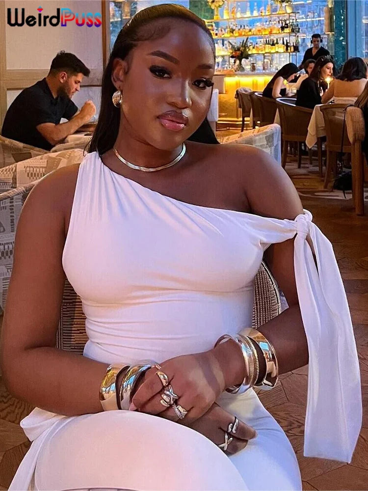 Weird Puss Chic Elegant 2 Piece Set Women Tracksuit Skew Collar Ribbon Tank Tsop+Leggings Casual Skinny Stretch Matching Outfits