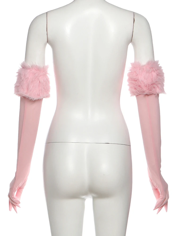 Weird Puss Christmas Furry Strapless Tops Women Patchwork Sexy Long Gloves Matching Birthday Luxury Classic Midnight Clubwear
