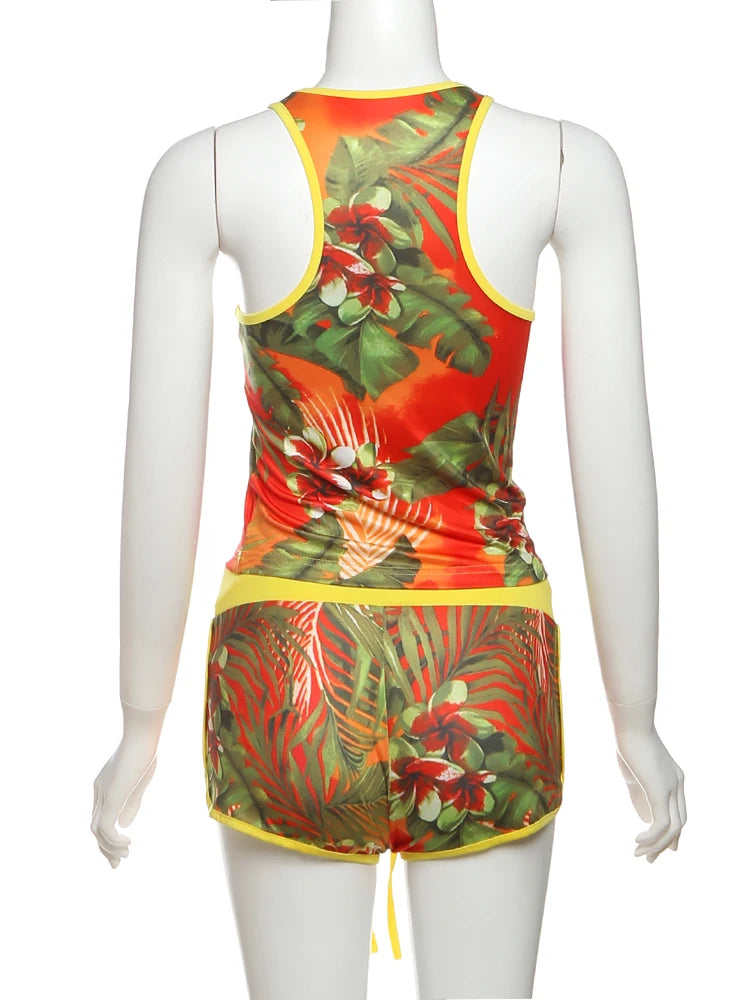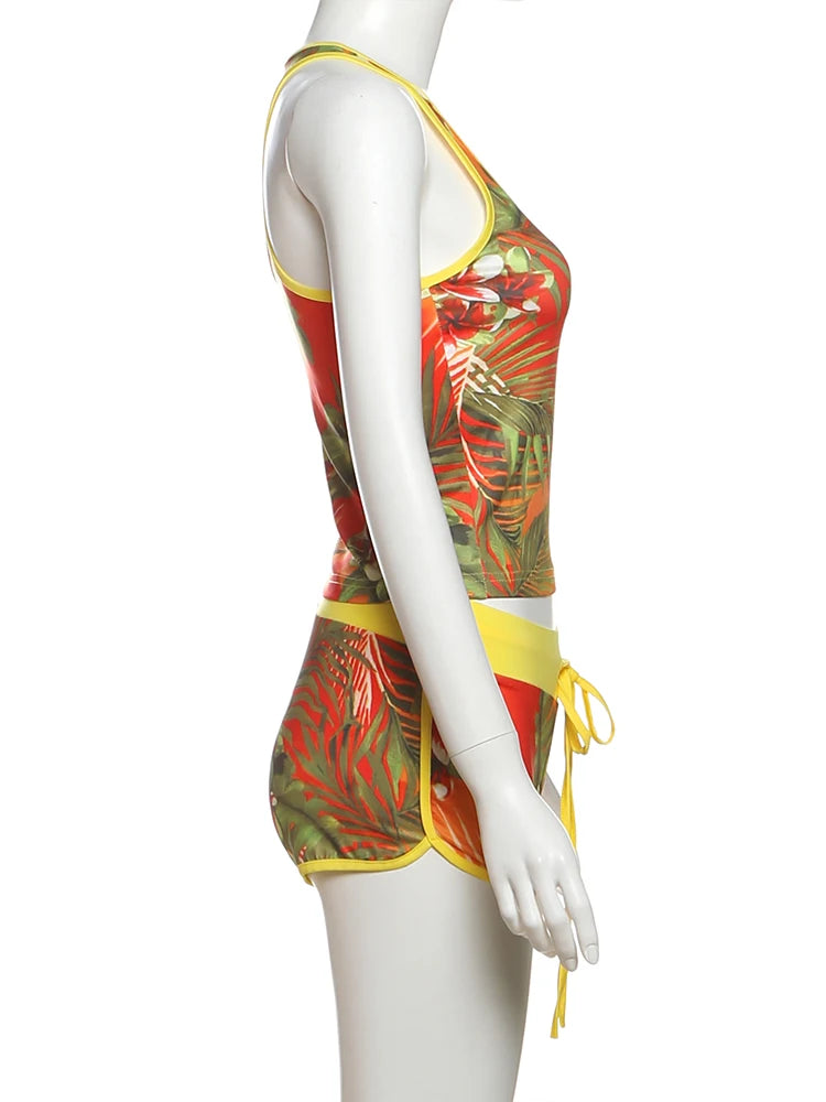 Weird Puss Colorful Print Women Tracksuit 2Piece Set Summer Casual Tank Tops+Shorts Matching Streetwear Stretch Activity Outfits
