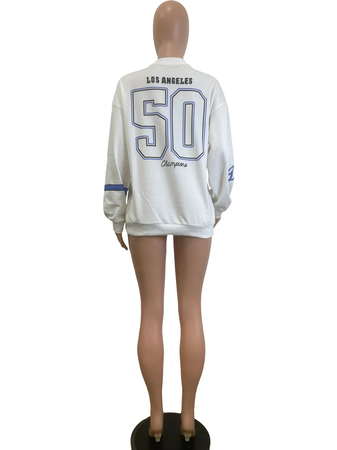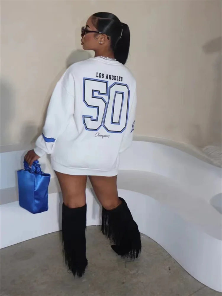 Weird Puss Contrast Letter Print Pullover Women Casual O-Neck Long Sleeve Trend Streetwear Autumn Sporty Simple Activity Tops